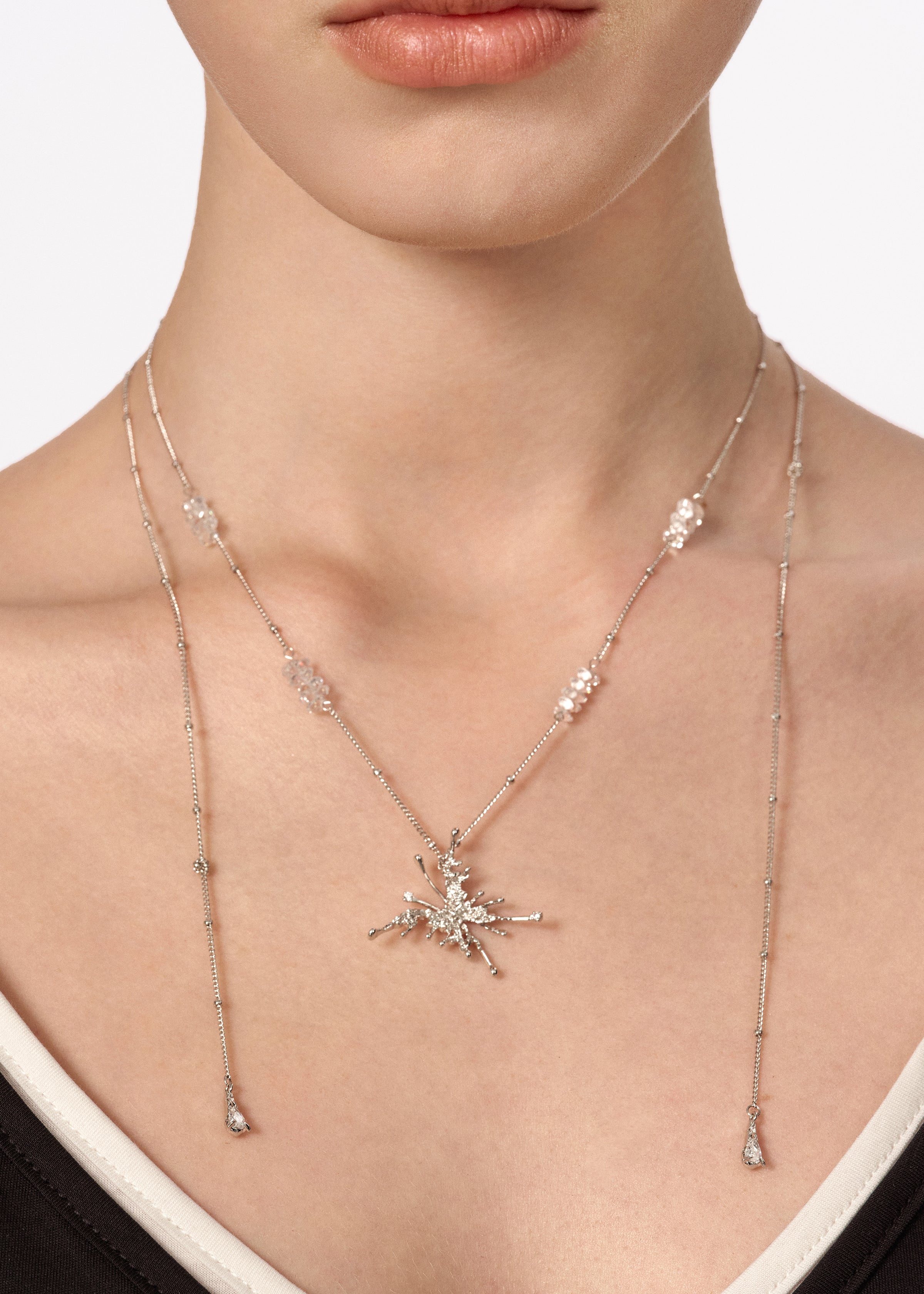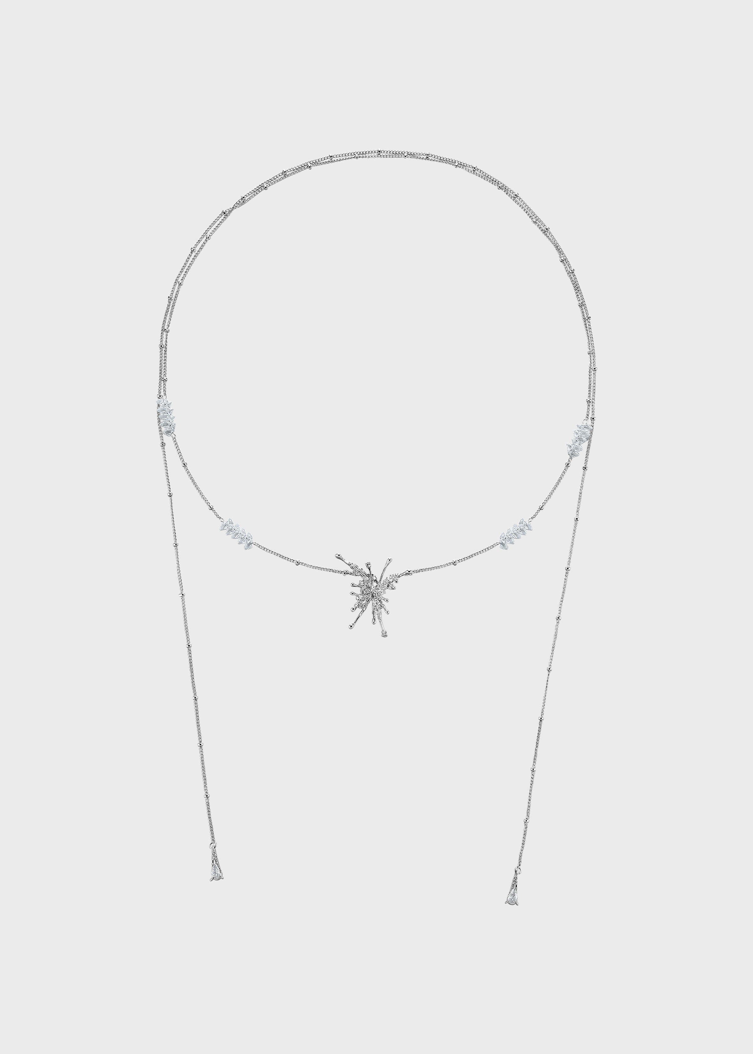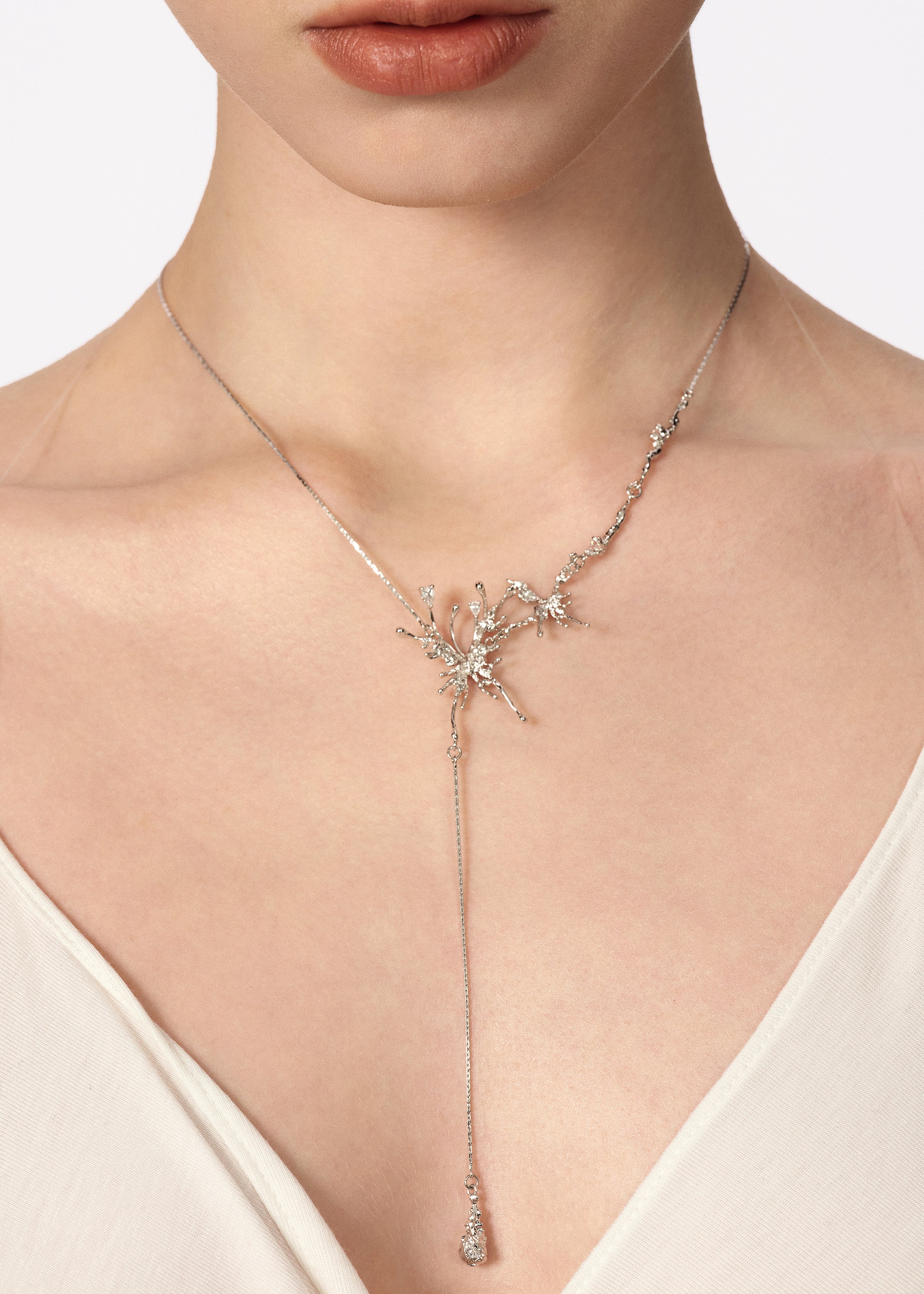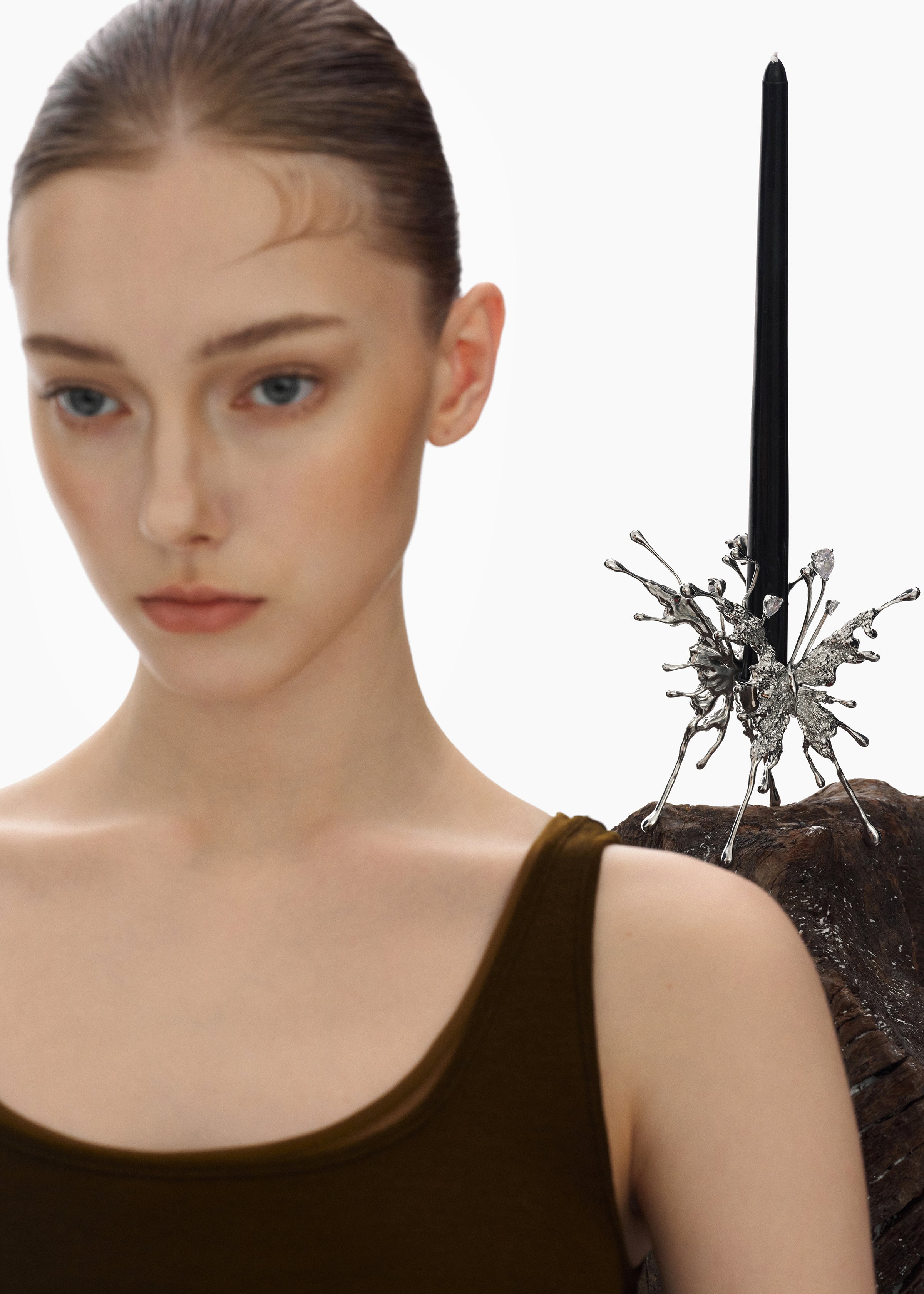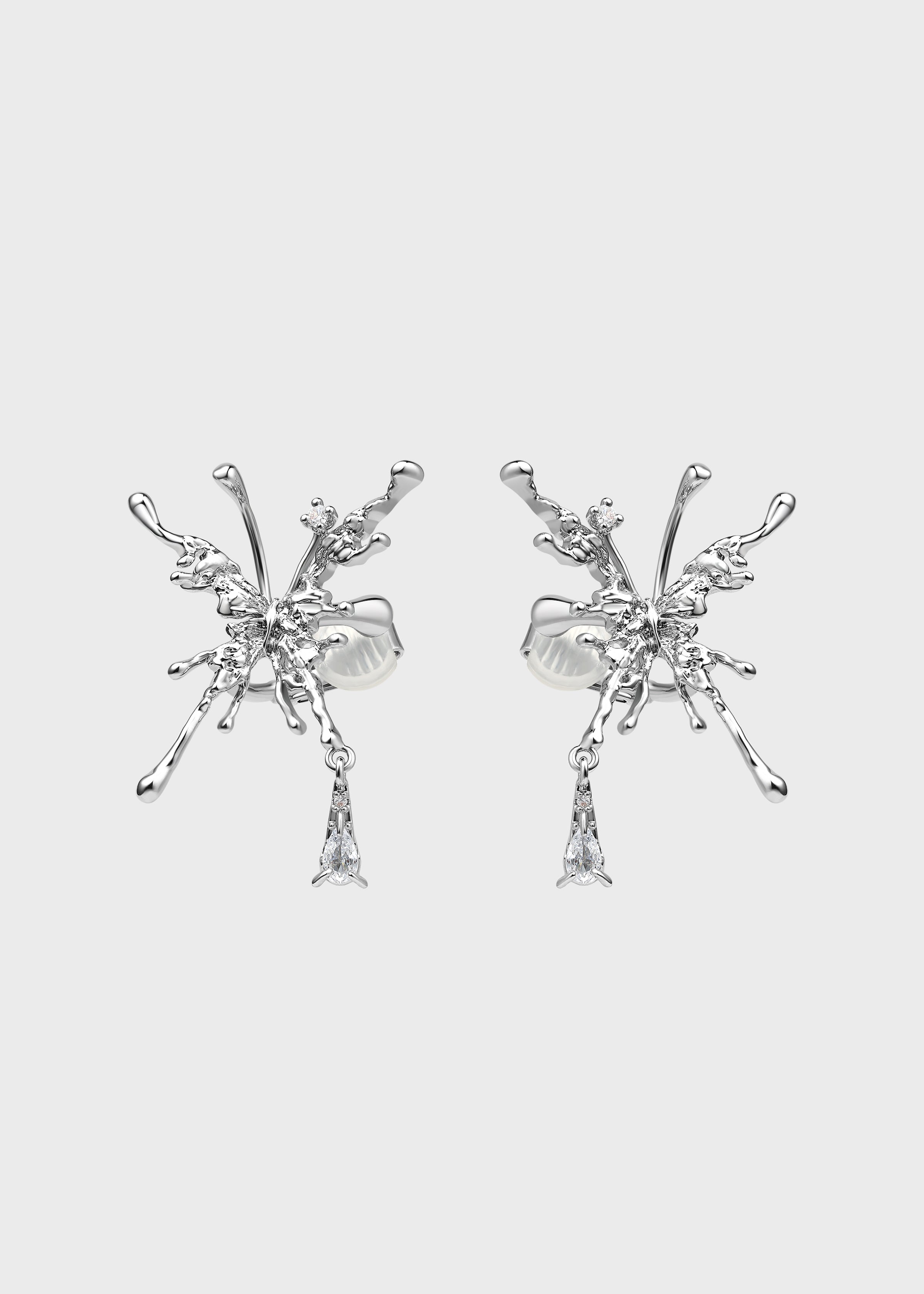 This collection captures delicate wings in sculptural forms, accented with shimmering stones that move with light.