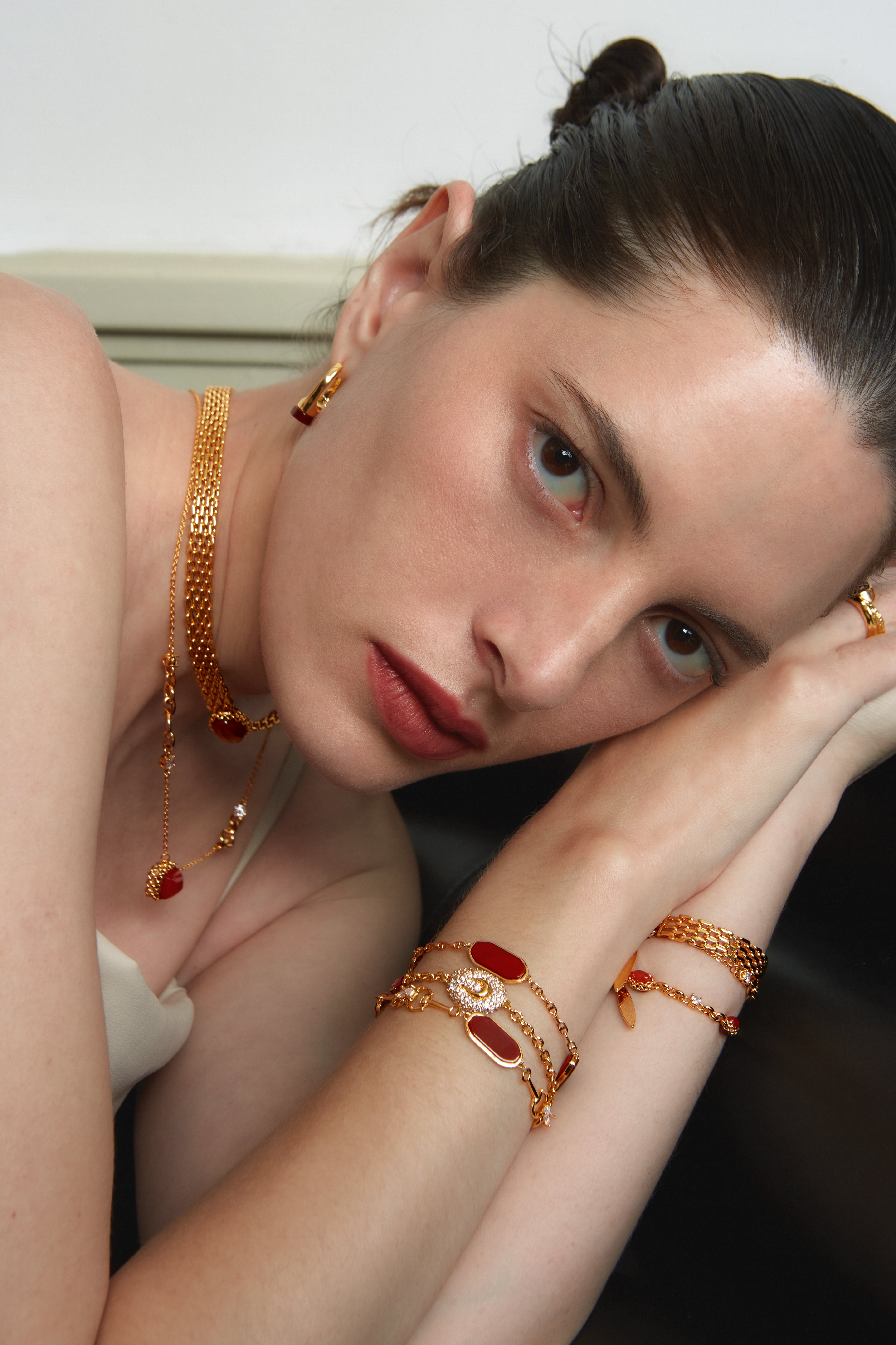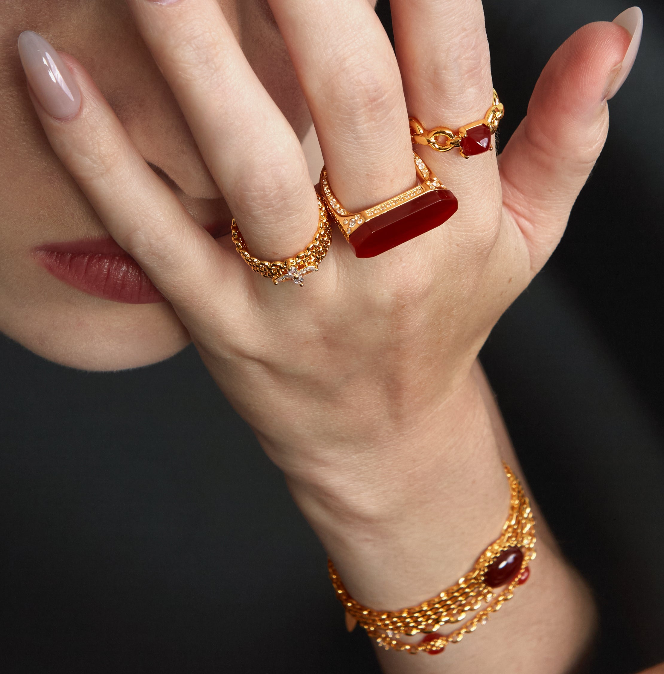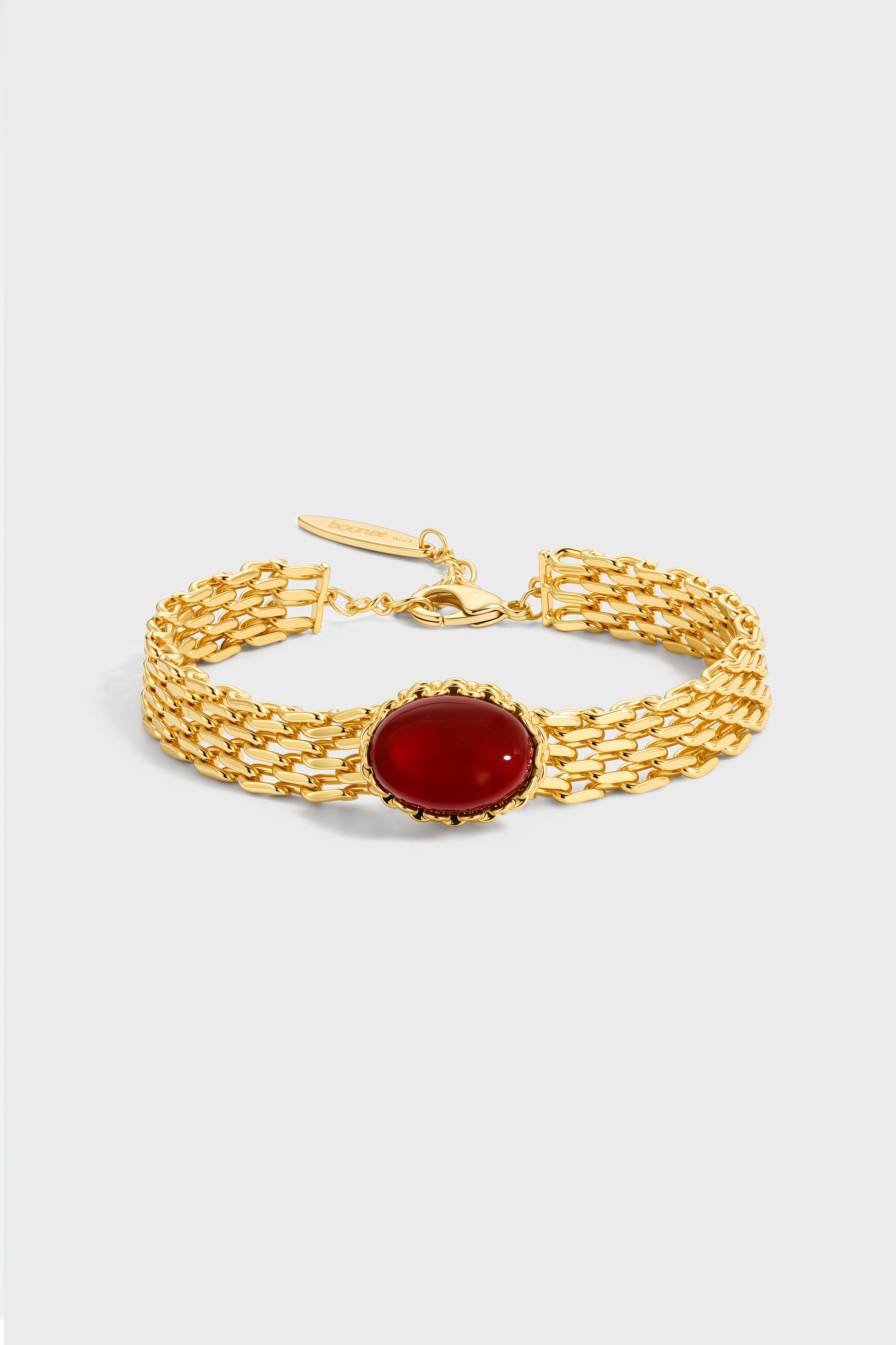 24K gold-plated copper + Red Agate, crafted to jewelry-grade standards for durability and luxurious shine.