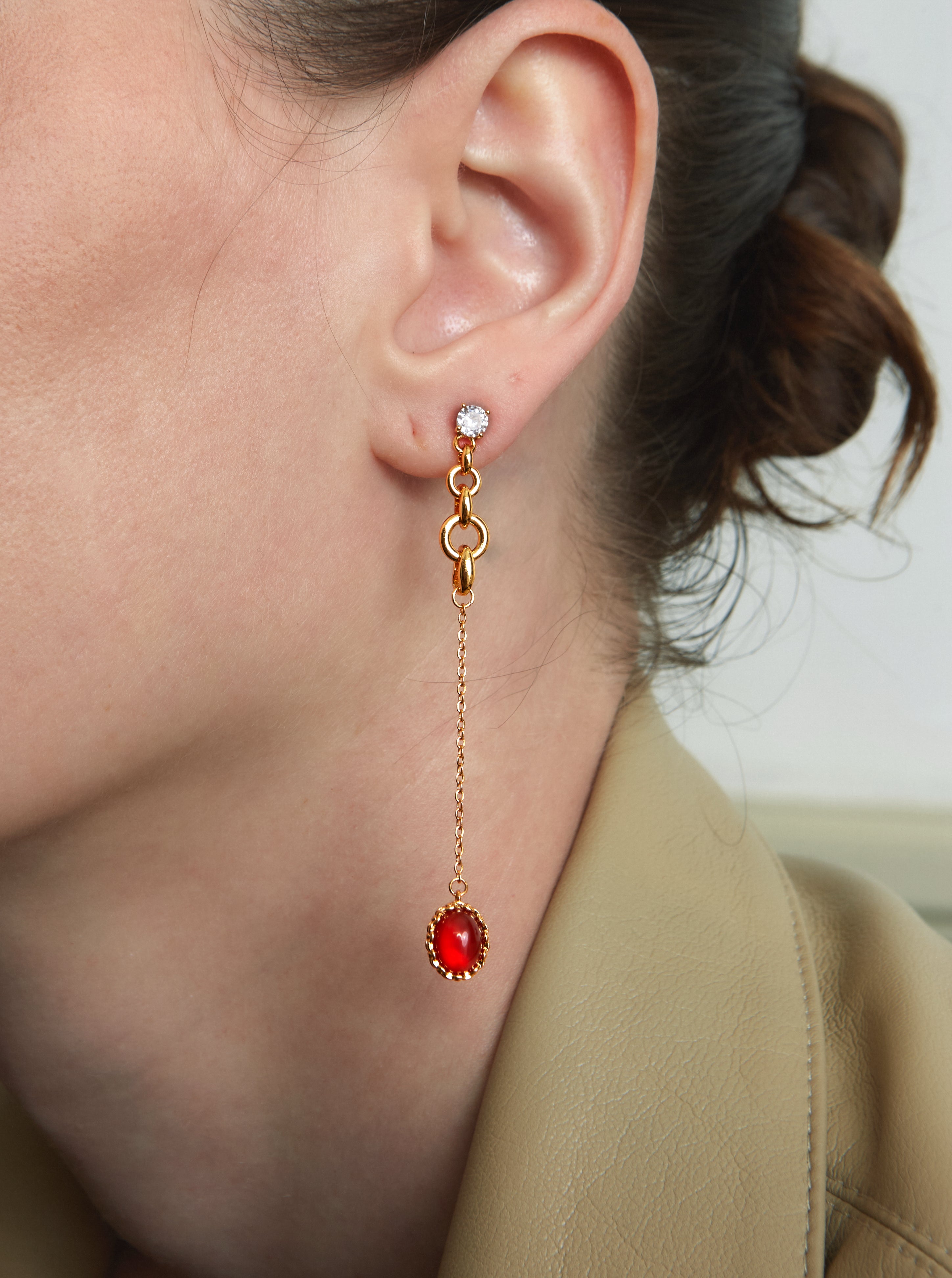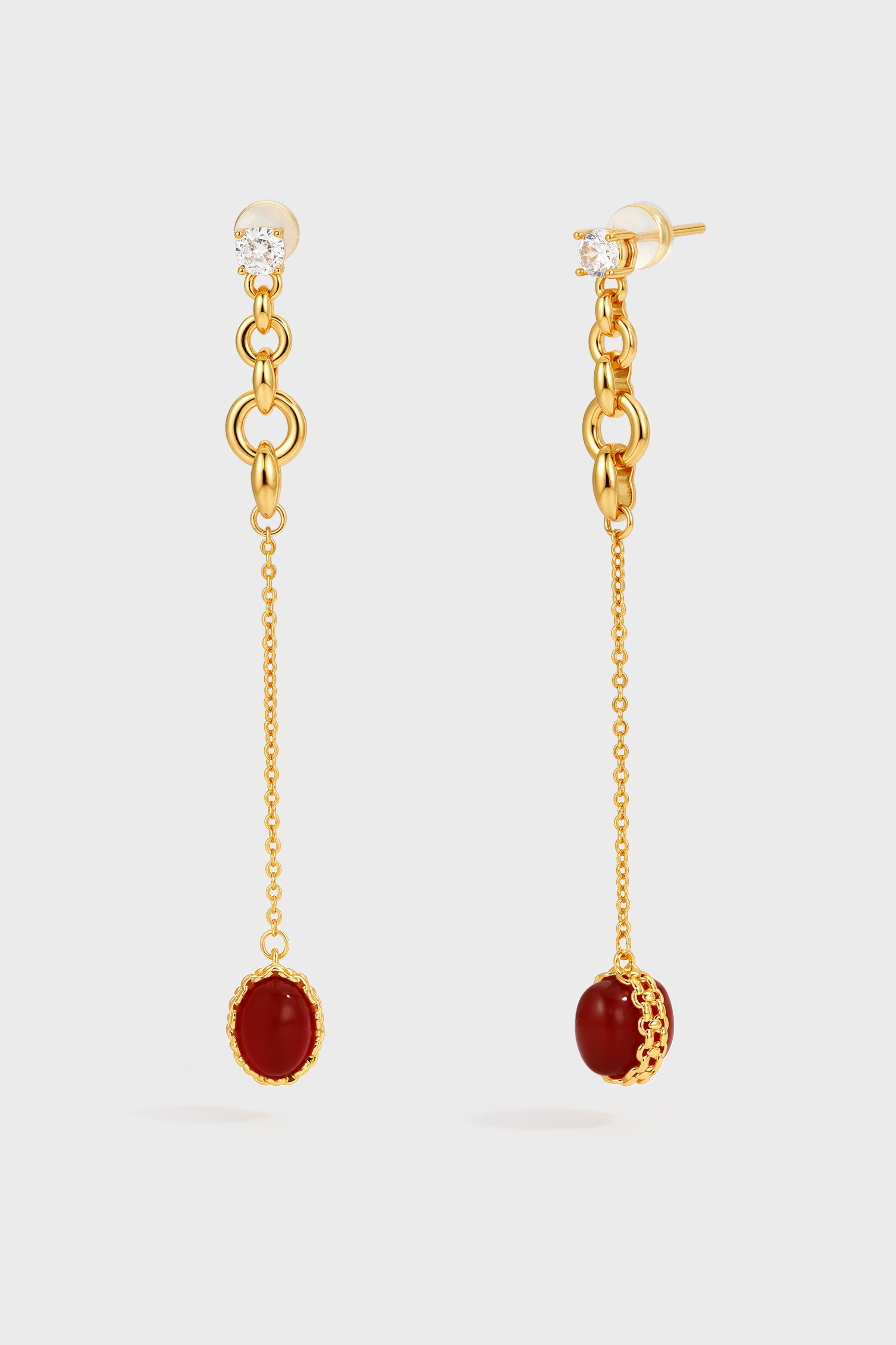 24K gold-plated copper + Red Agate + Cubic Zirconia + 925 Silver posts for durability and luxury.