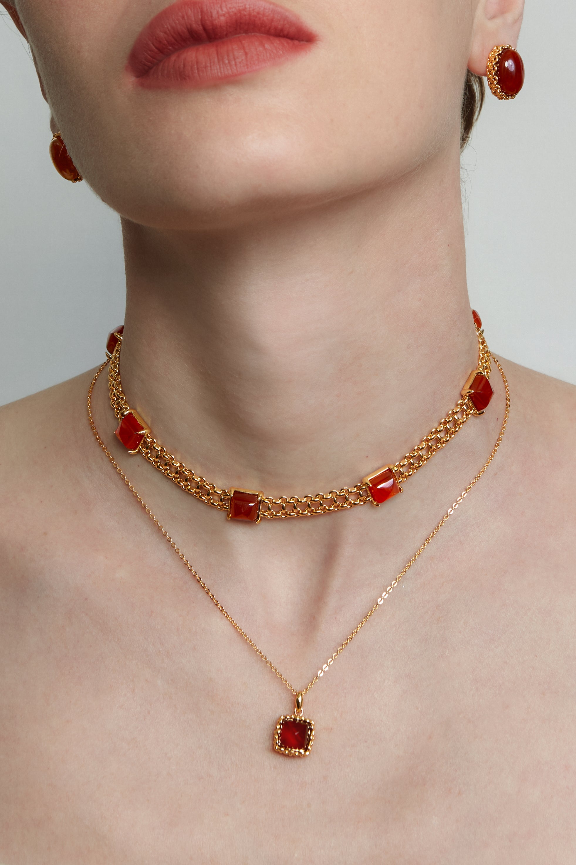 3D Sugar Pyramid Red Agate Woven Necklace – 24K Gold Plated