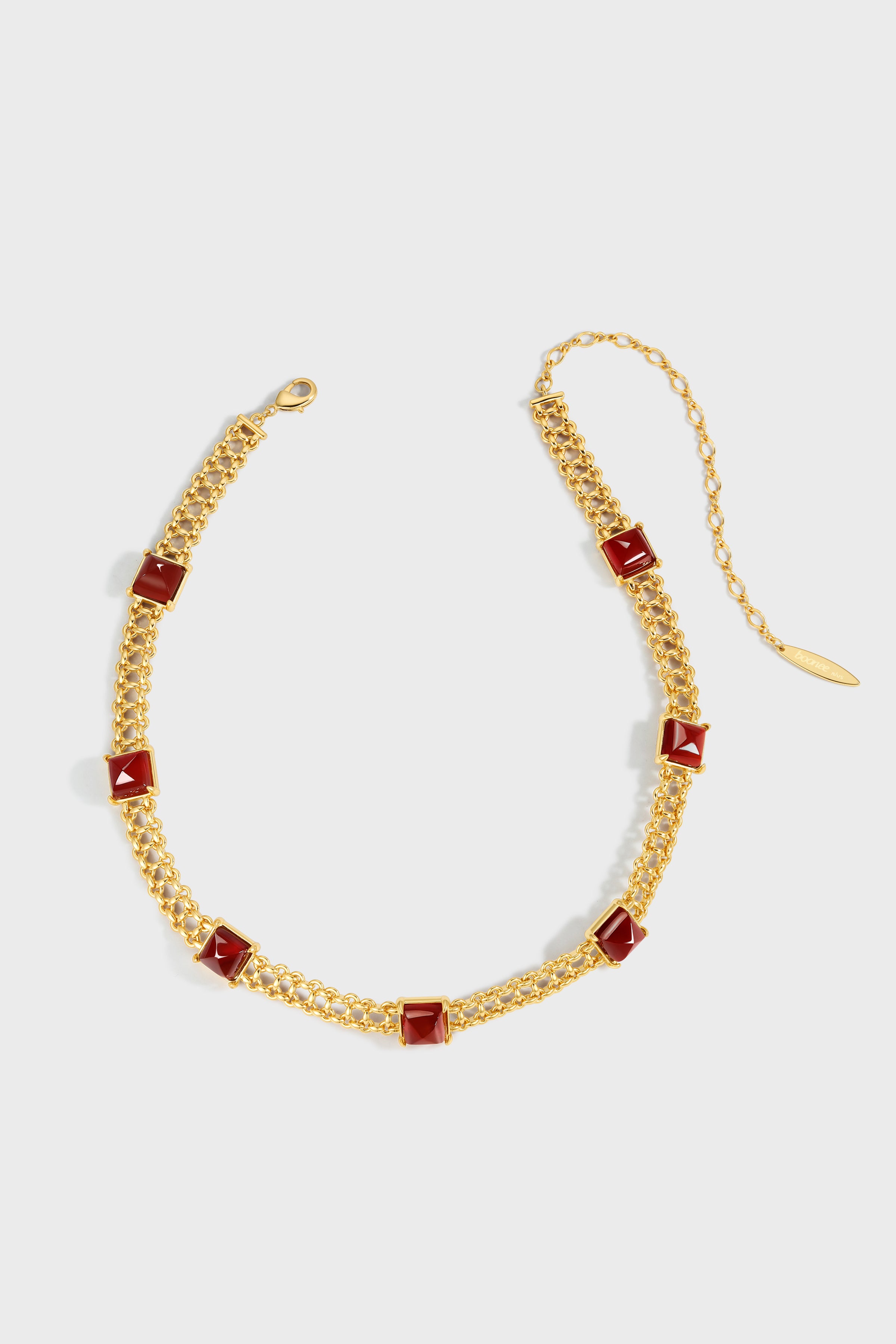 Sugar Pyramid Red Agate Woven Necklace – Black Label Jewelry Grade, 24K Gold Plated