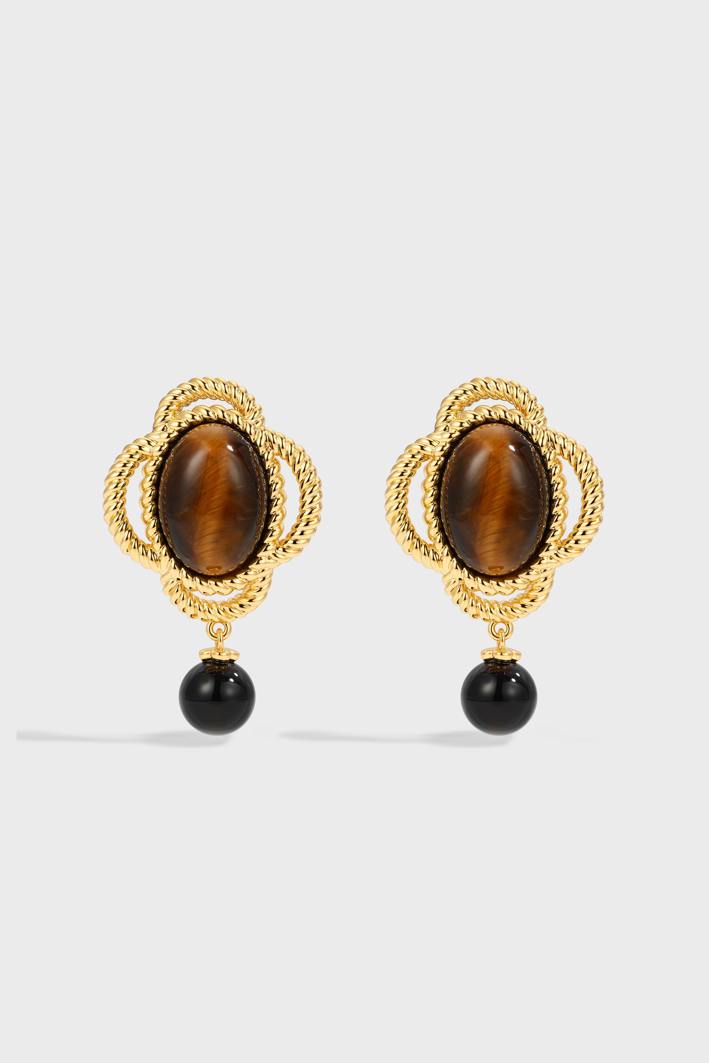 Material: 24K Gold-plated Copper, Tiger Eye, Black Onyx, 925 Silver Post