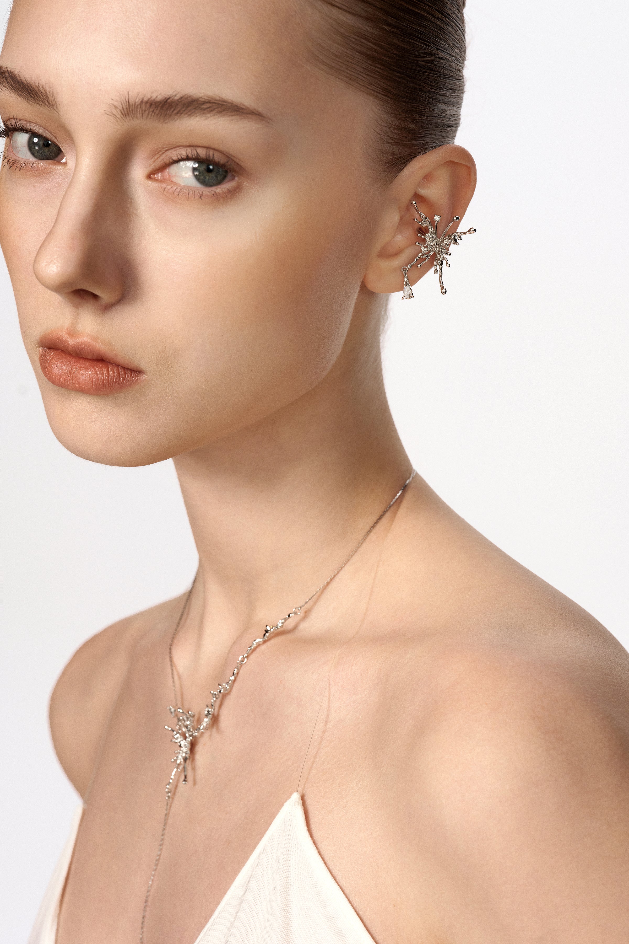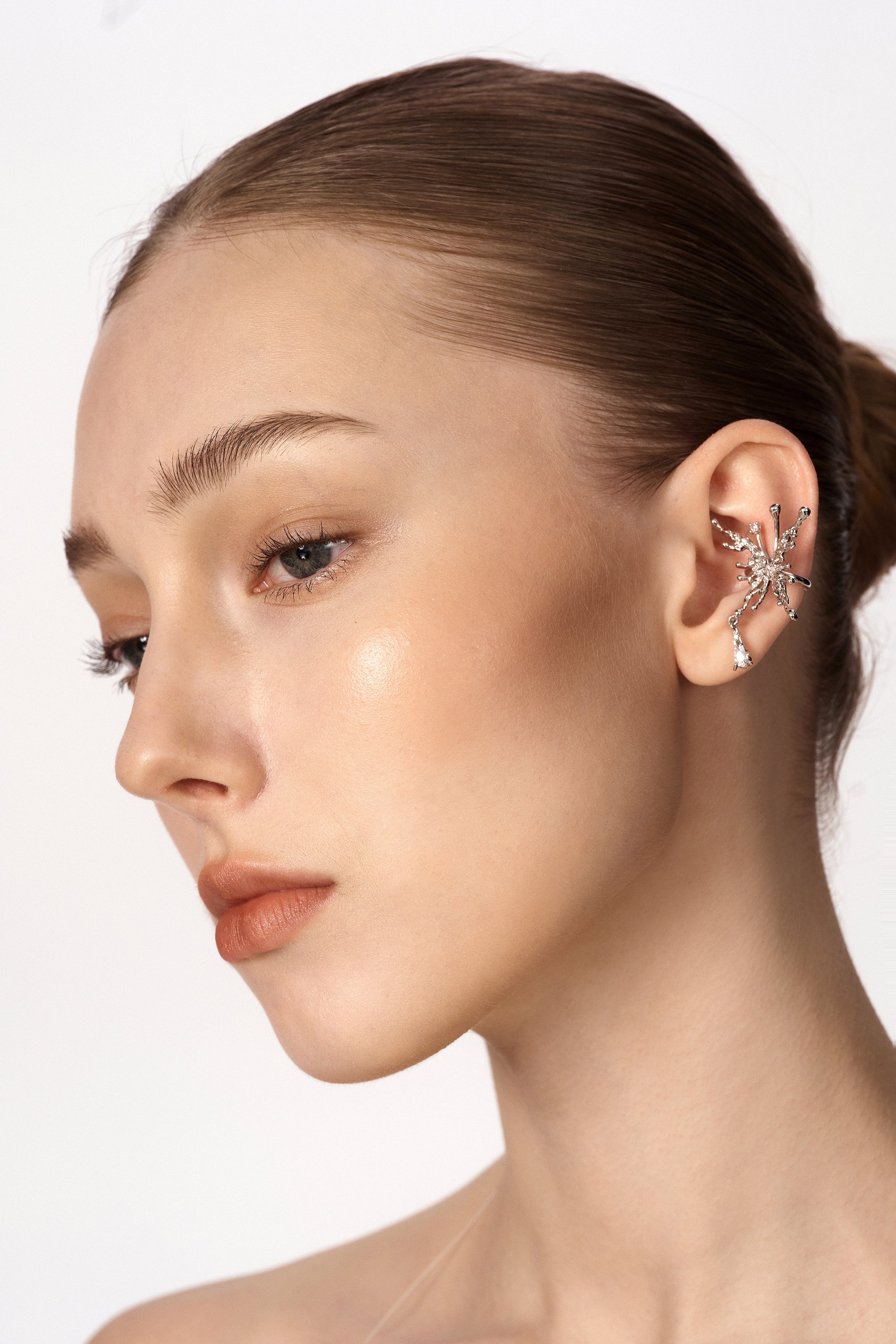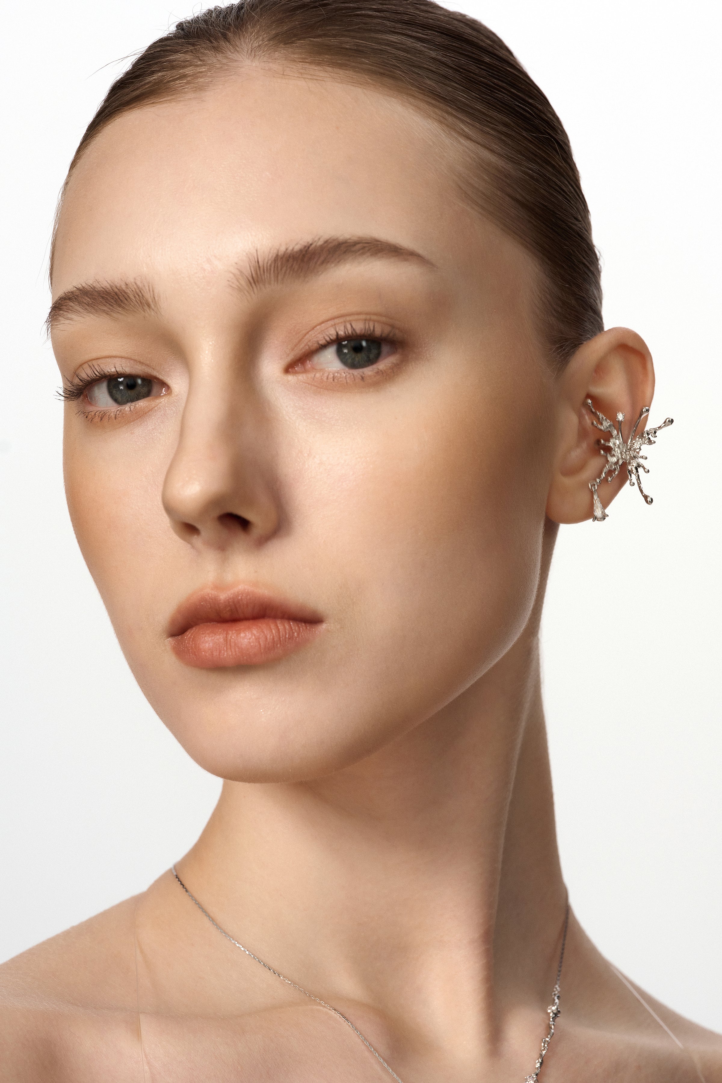 A sculptural butterfly wing unfolds naturally along the ear, defined by clean lines and quiet strength.