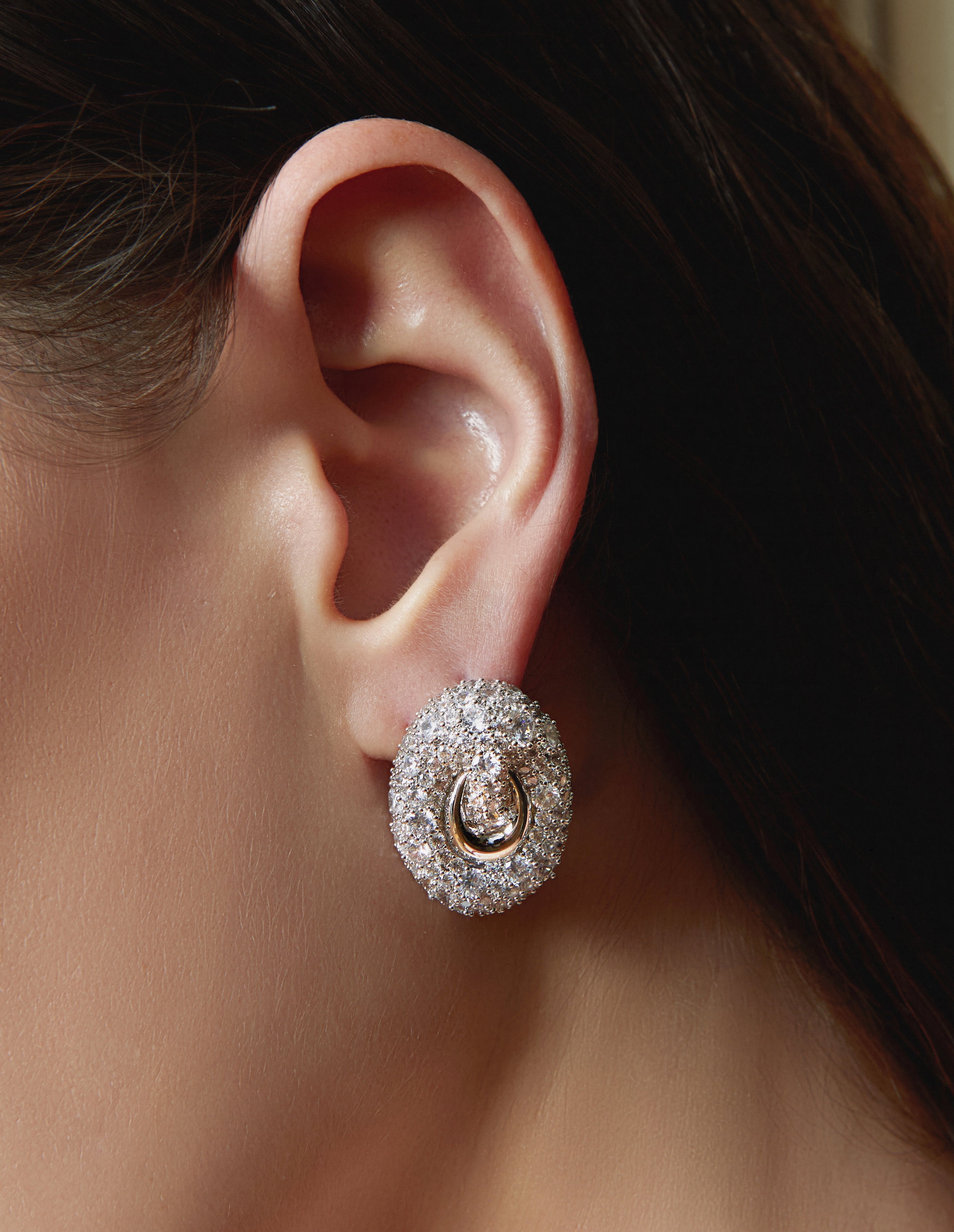 The horseshoe-inspired U-shaped silhouette is refined through multiple adjustments and precision polishing, creating smooth, natural curves with a mirror-like finish. Paired with the pavé sparkle, the design delivers a jewelry-grade radiance that feels bold, polished, and undeniably refined.