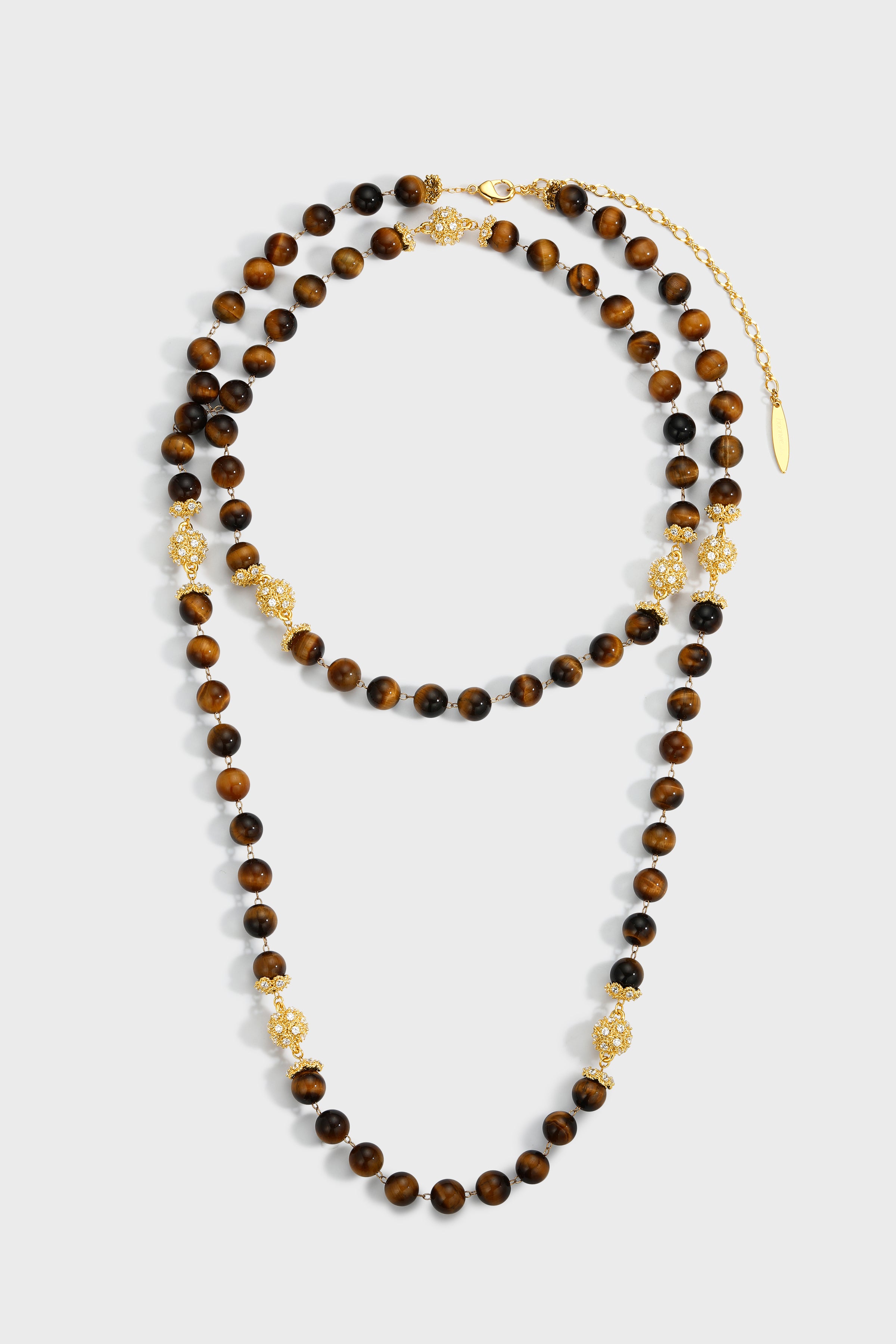 Material: 24K Gold-plated Copper, Tiger Eye, Cubic Zirconia