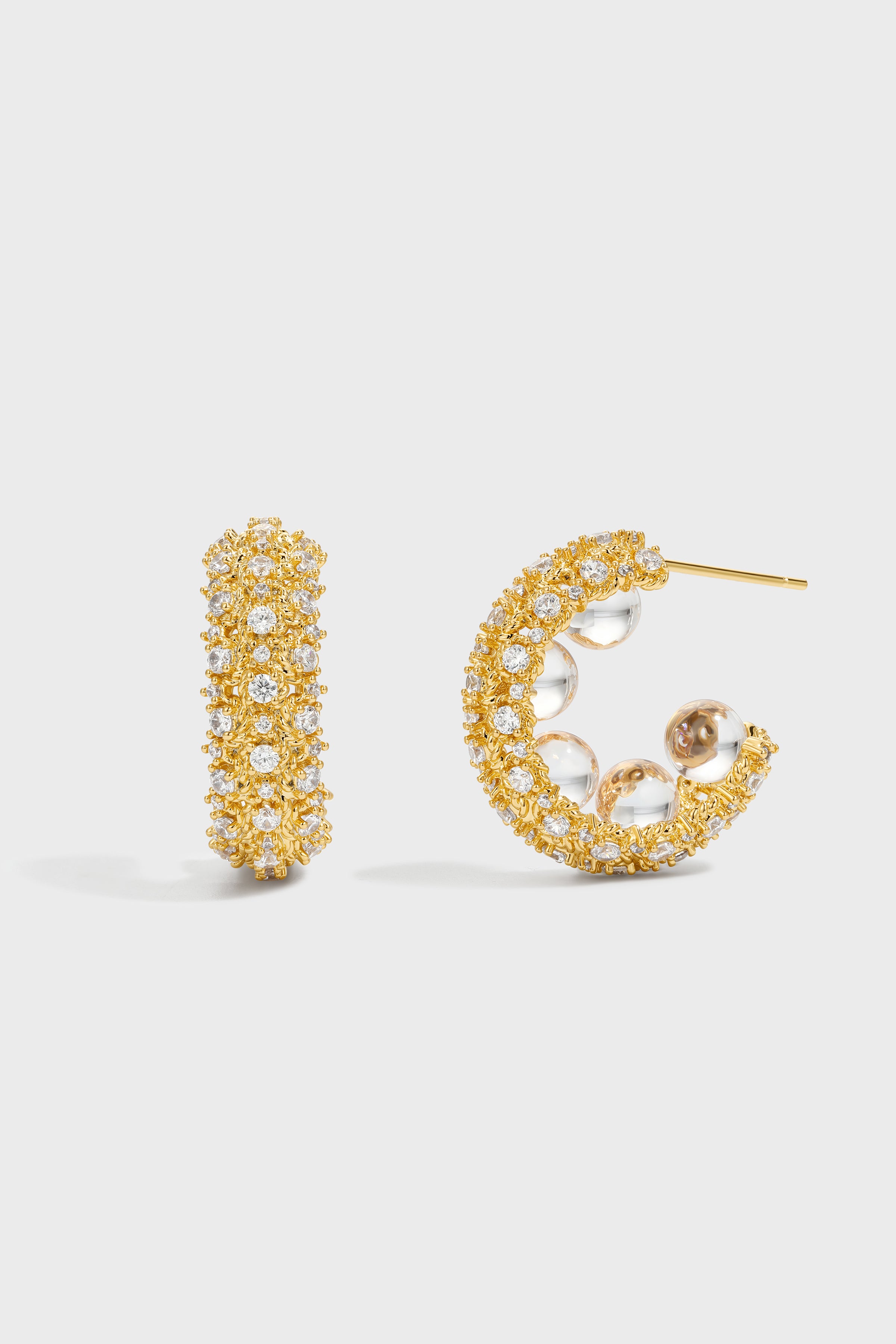 Material: 24K Gold-plated Copper, Zircon Beads, Cubic Zirconia, 925 Silver Post