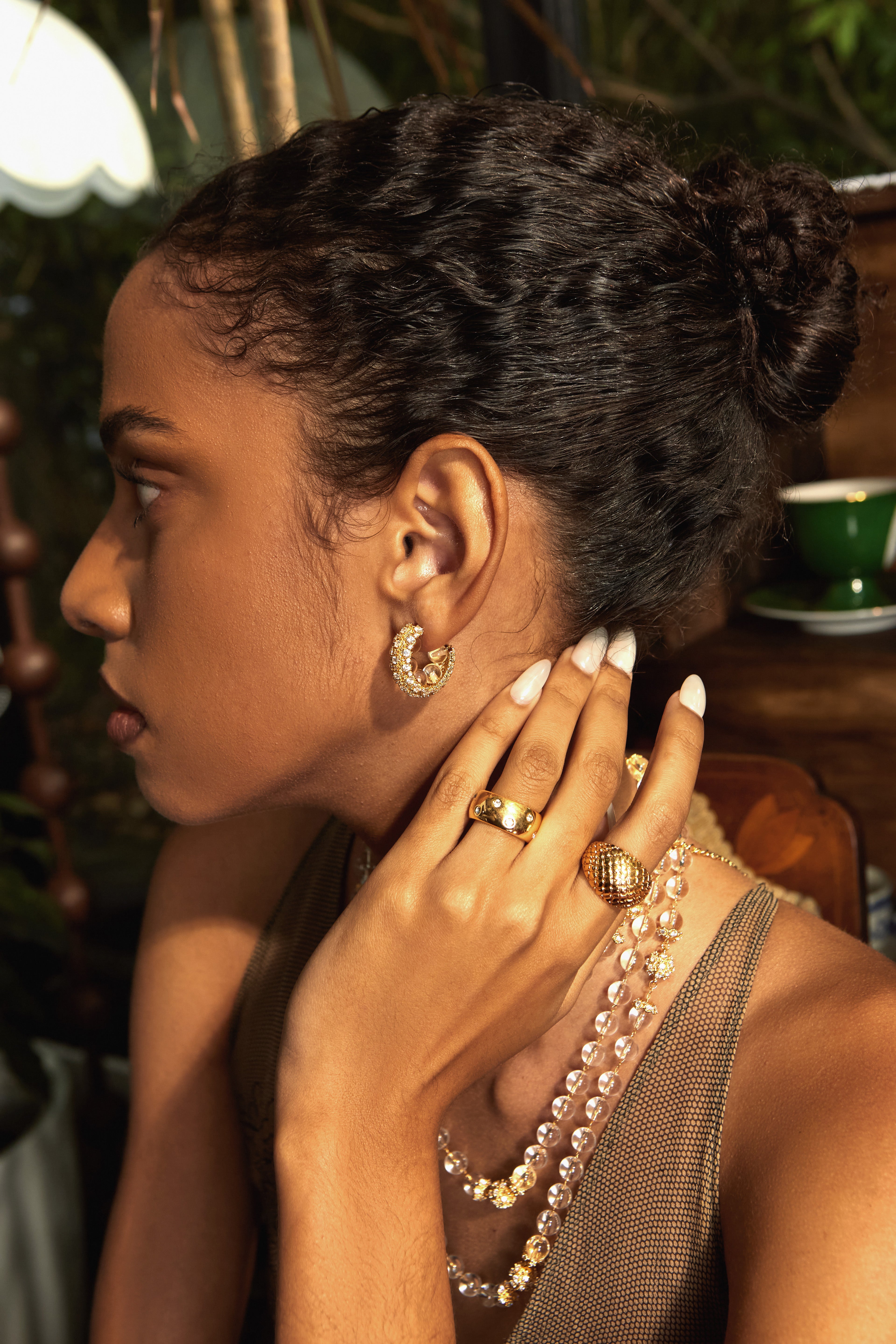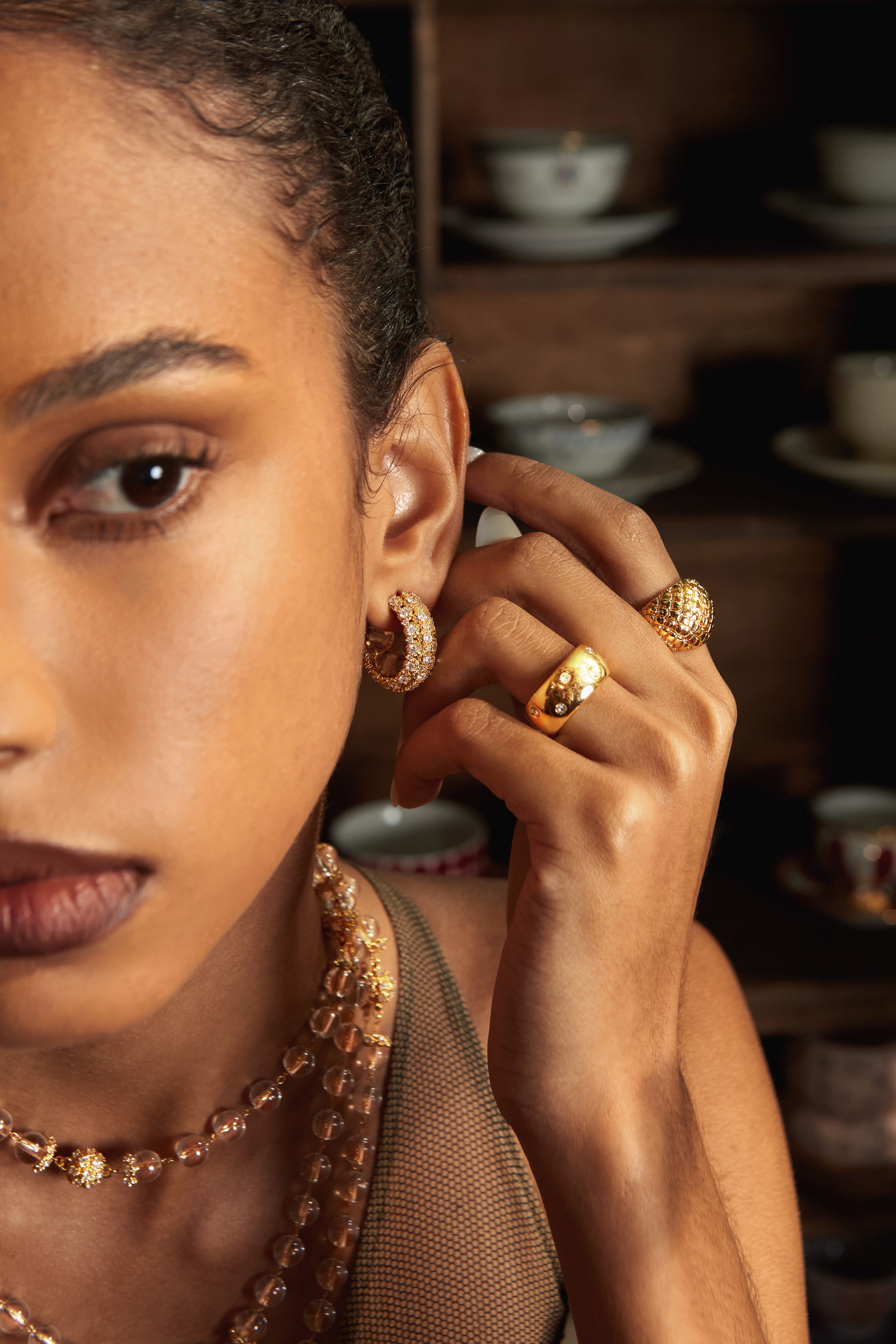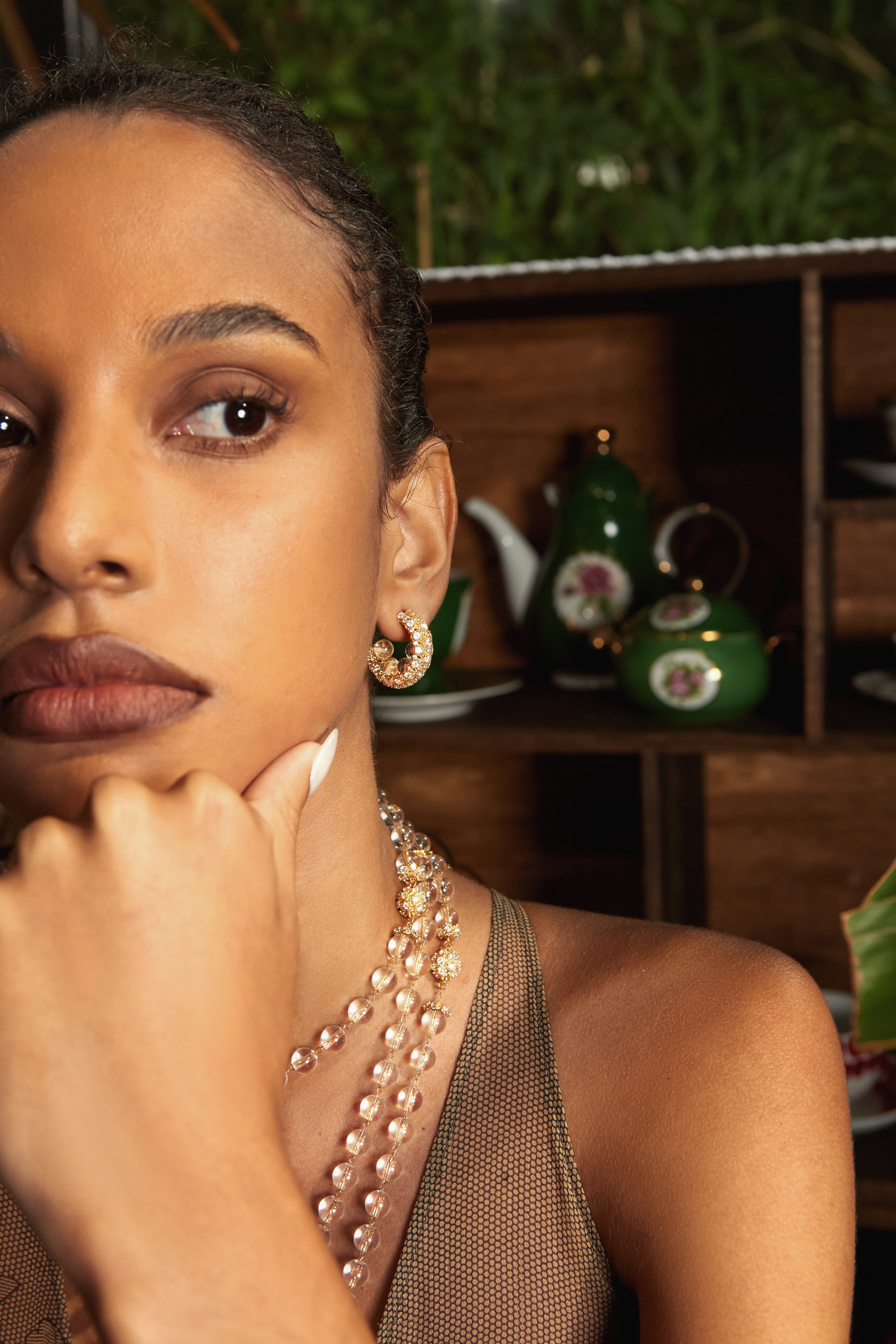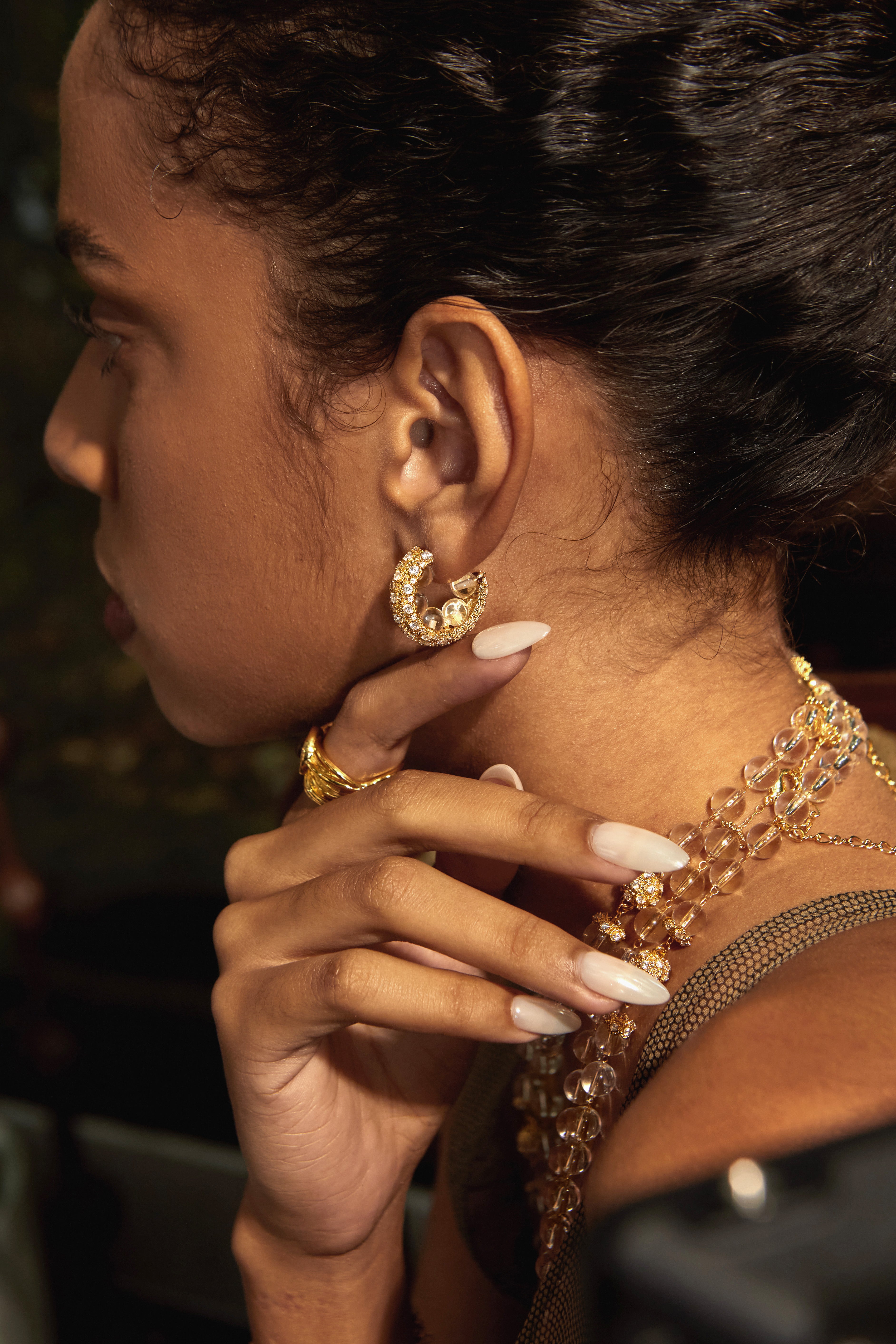 Rooted in a luminous, warm color palette, this design fuses faceted zircon beads with a liquid gold sheen, accented with Cubic Zirconia — creating a radiant and dynamic vintage-inspired jewelry piece.