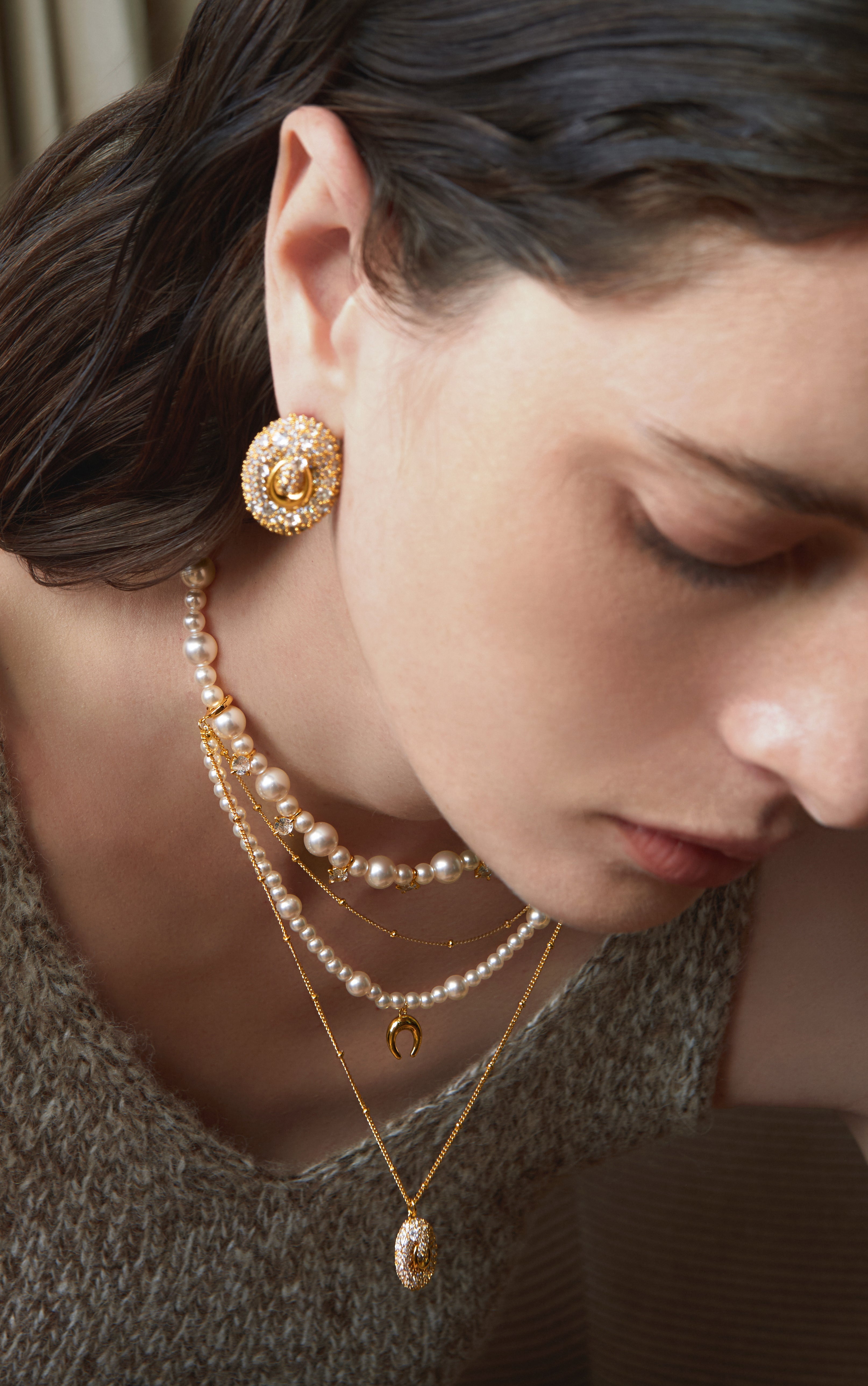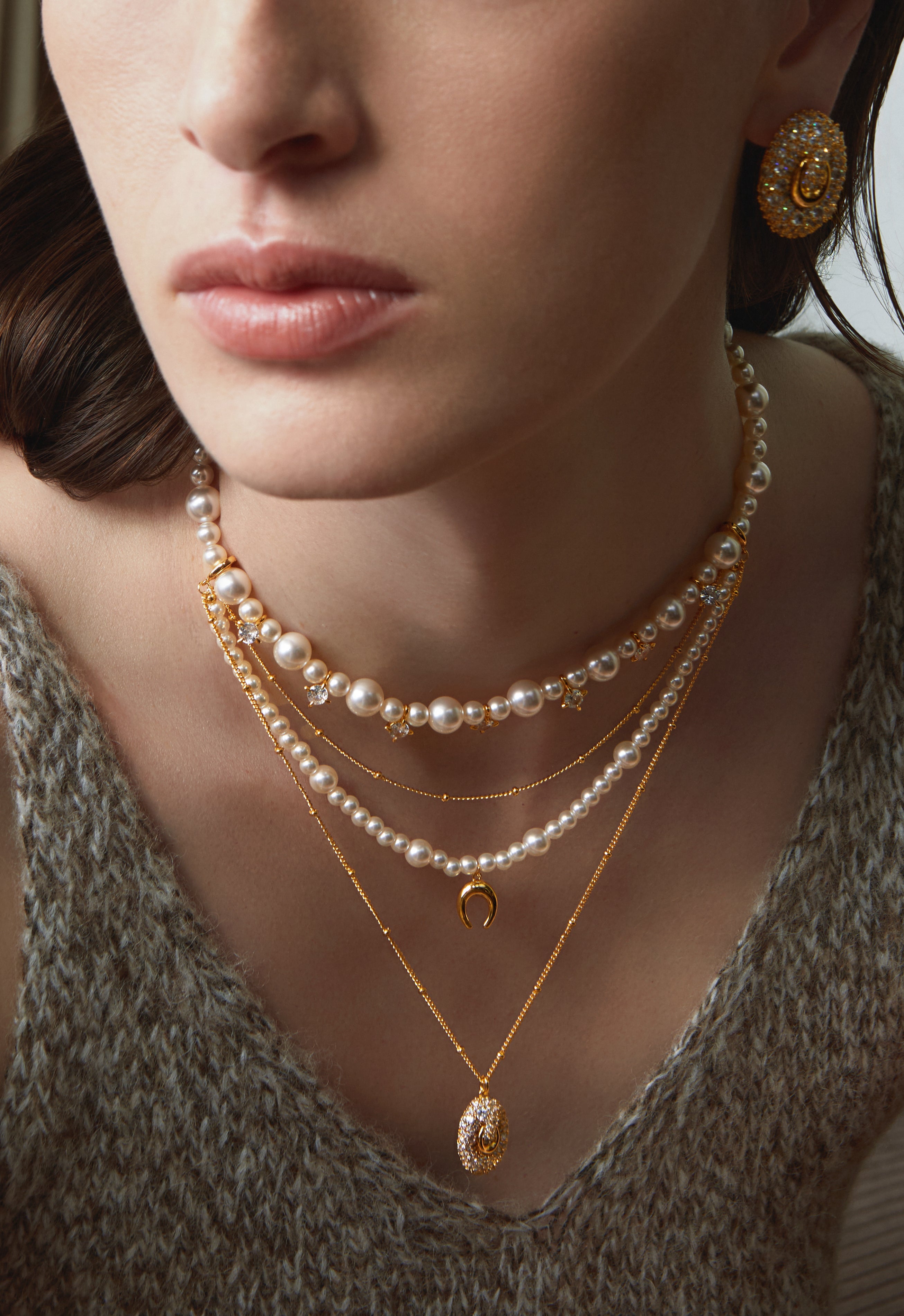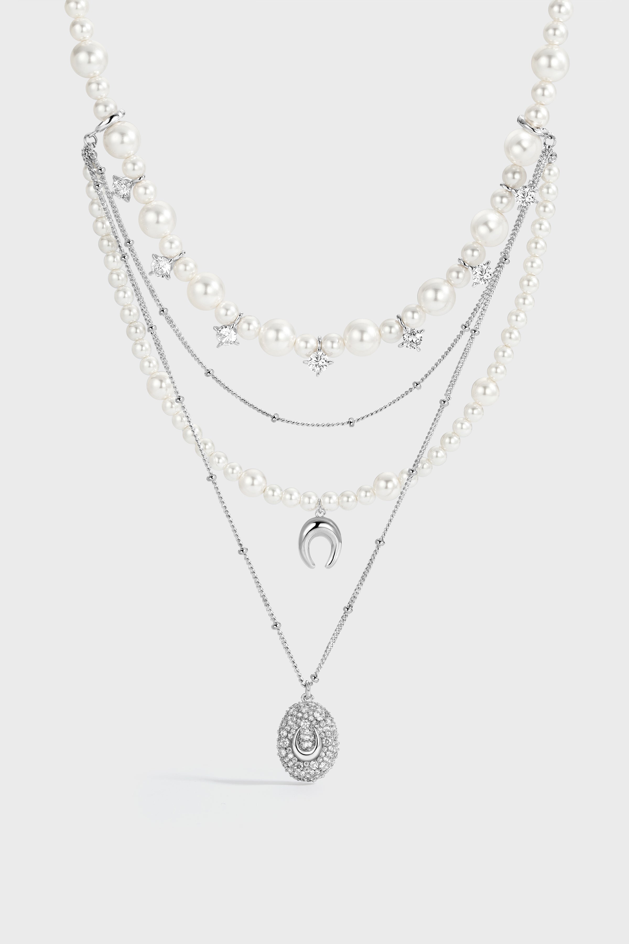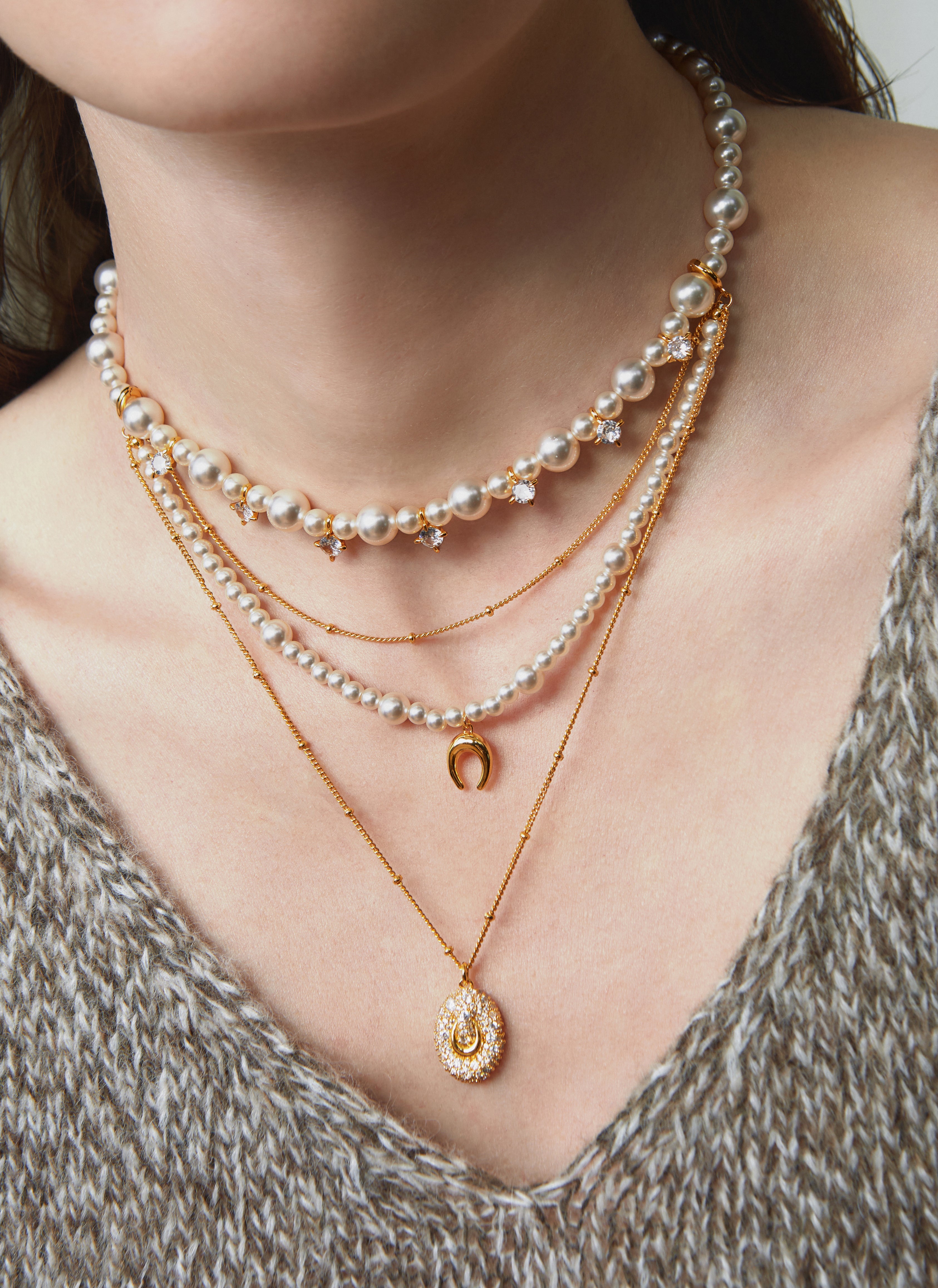 An elevated layered design combining pearls and fine chains.