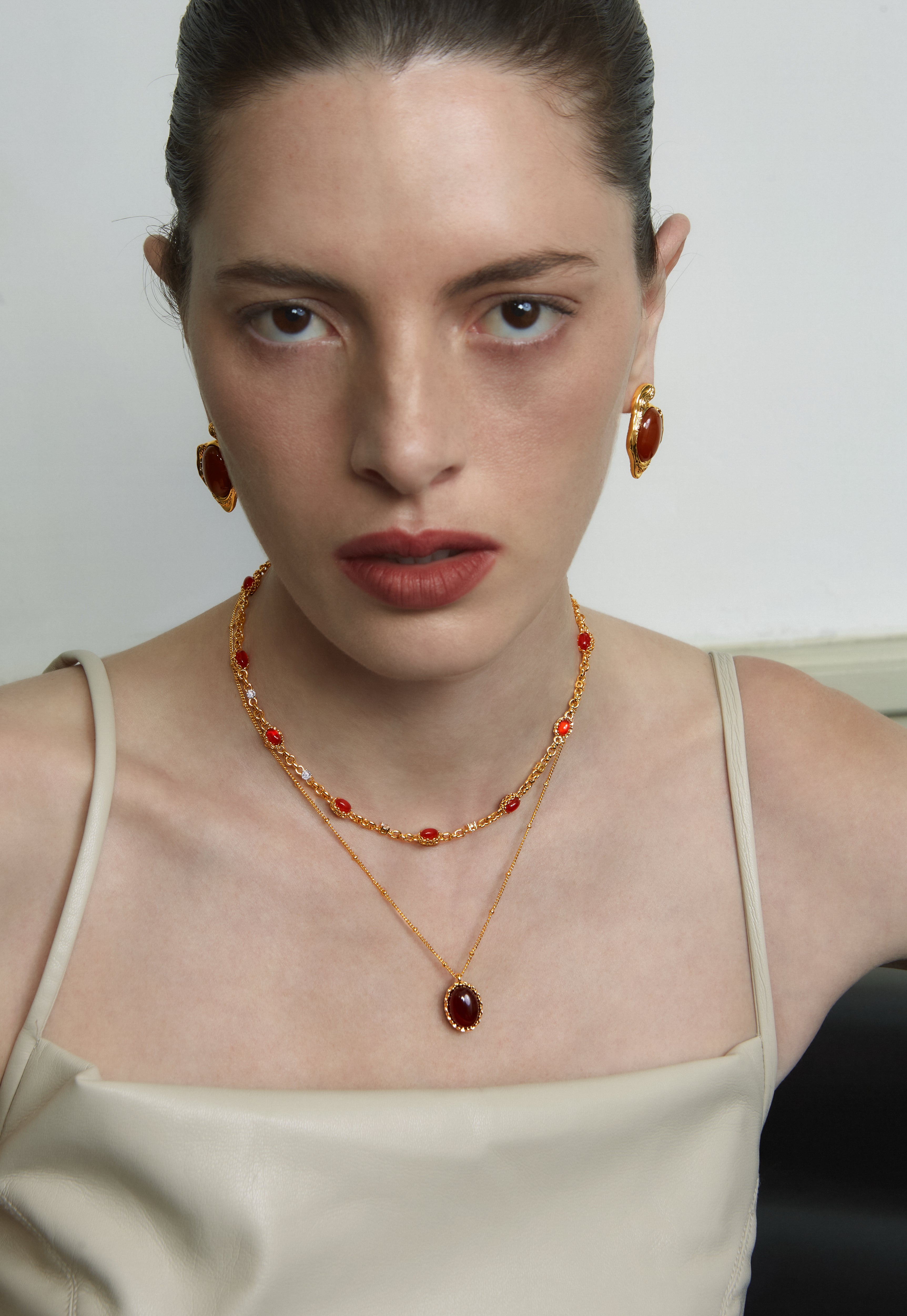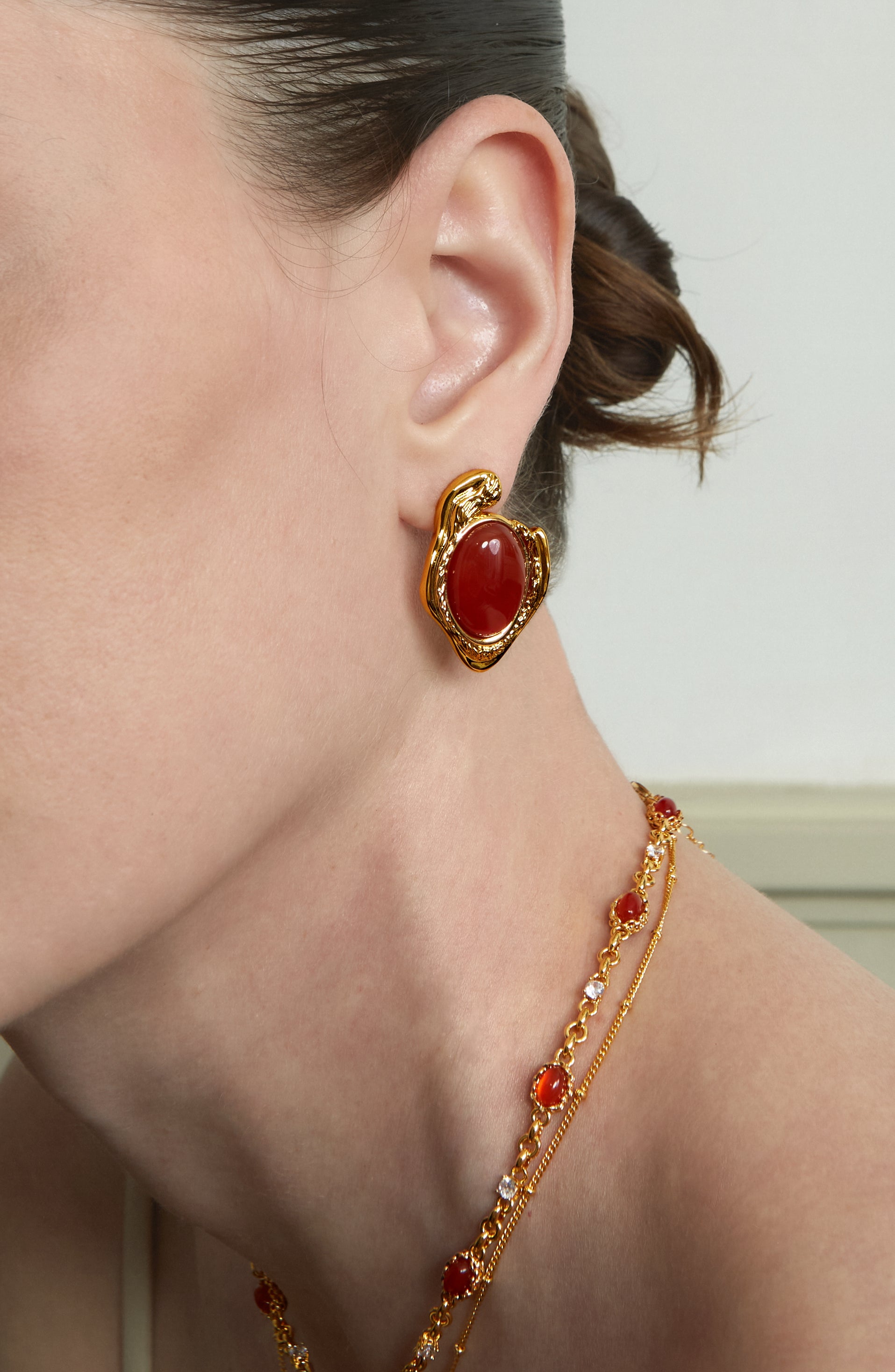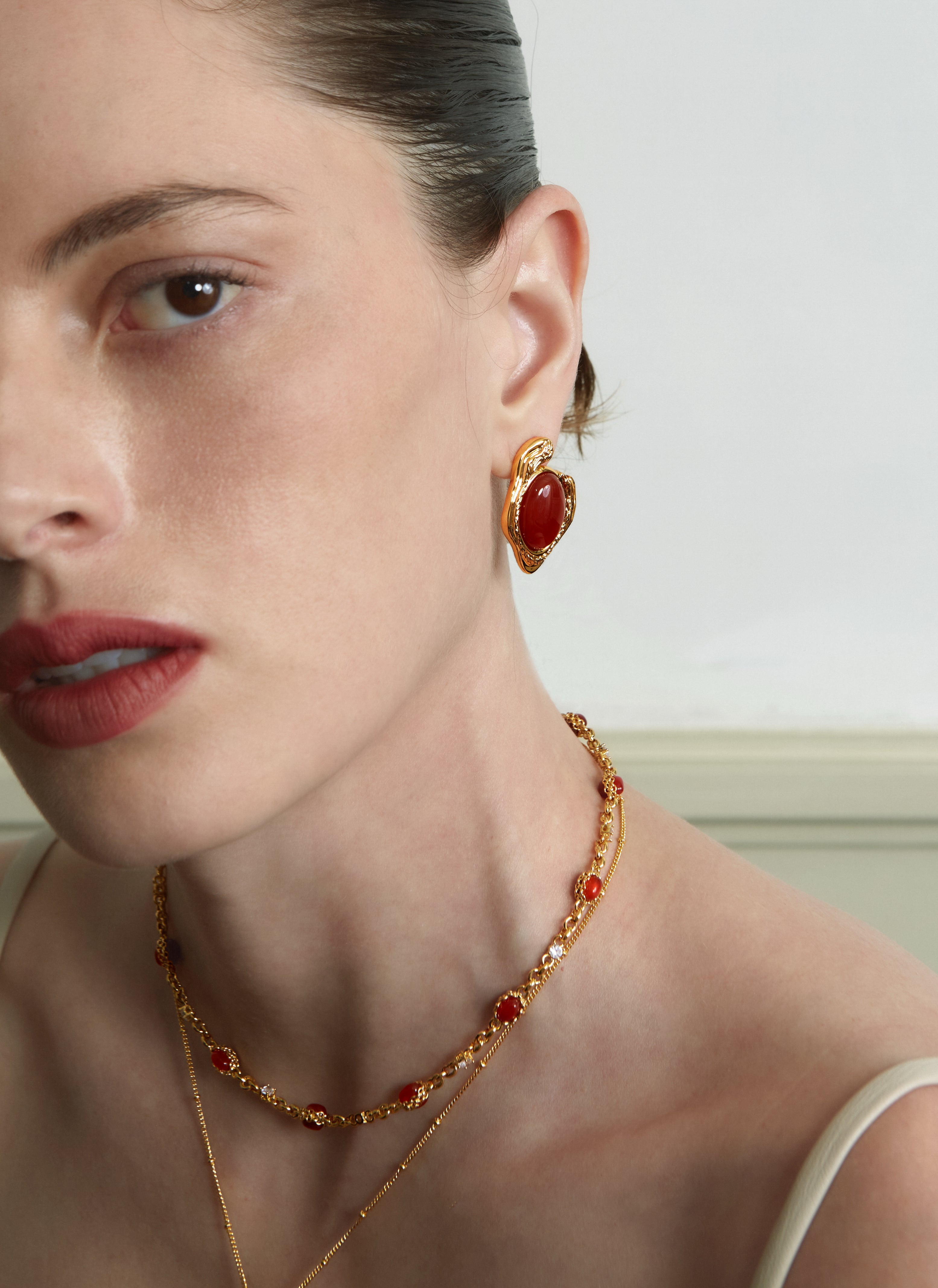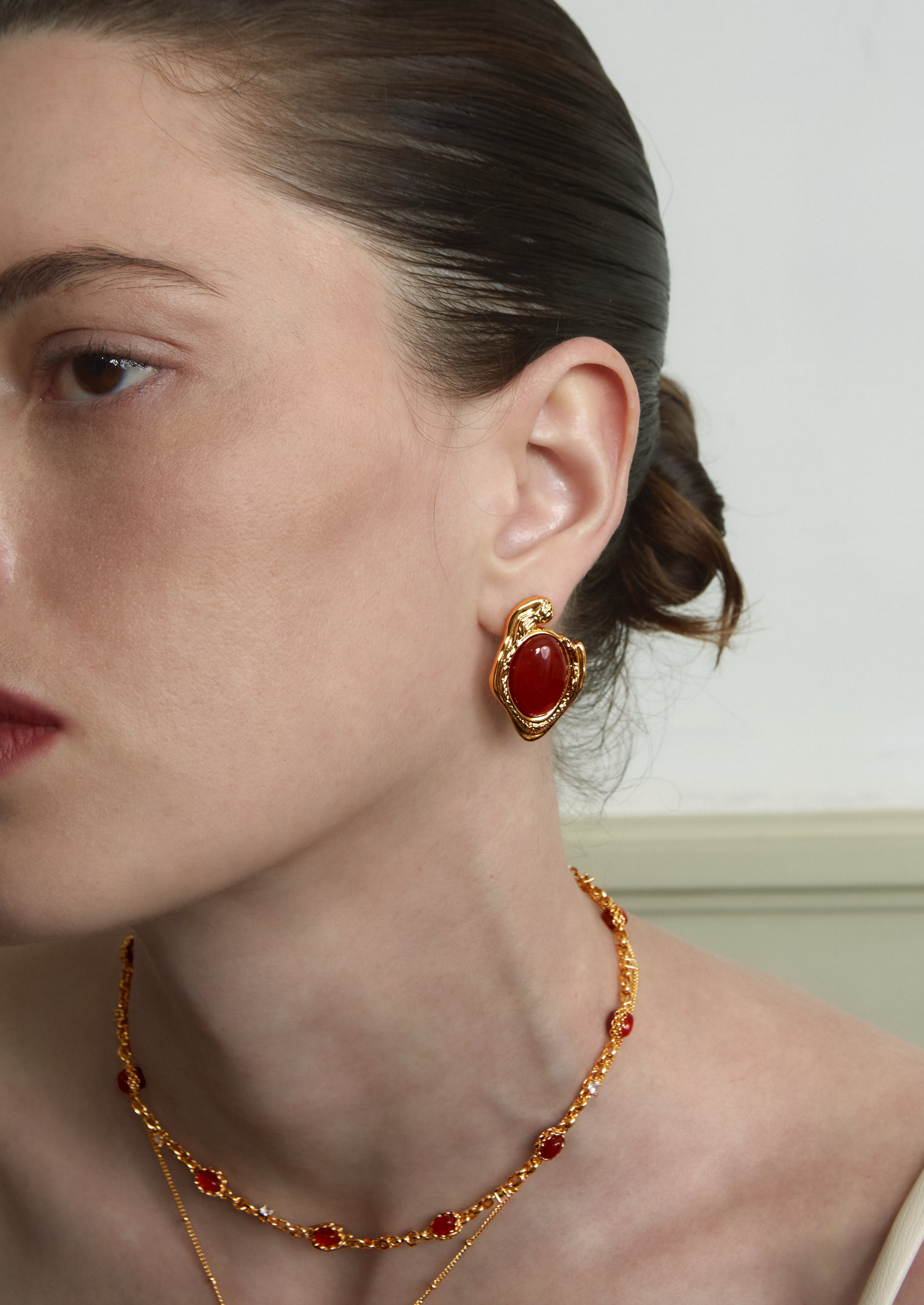 Crafted with selected natural, jewelry-grade red agate, featuring a rich, saturated hue reminiscent of a luminous ruby. Each stone is naturally unique, delivering fine-jewelry quality and visual depth.
