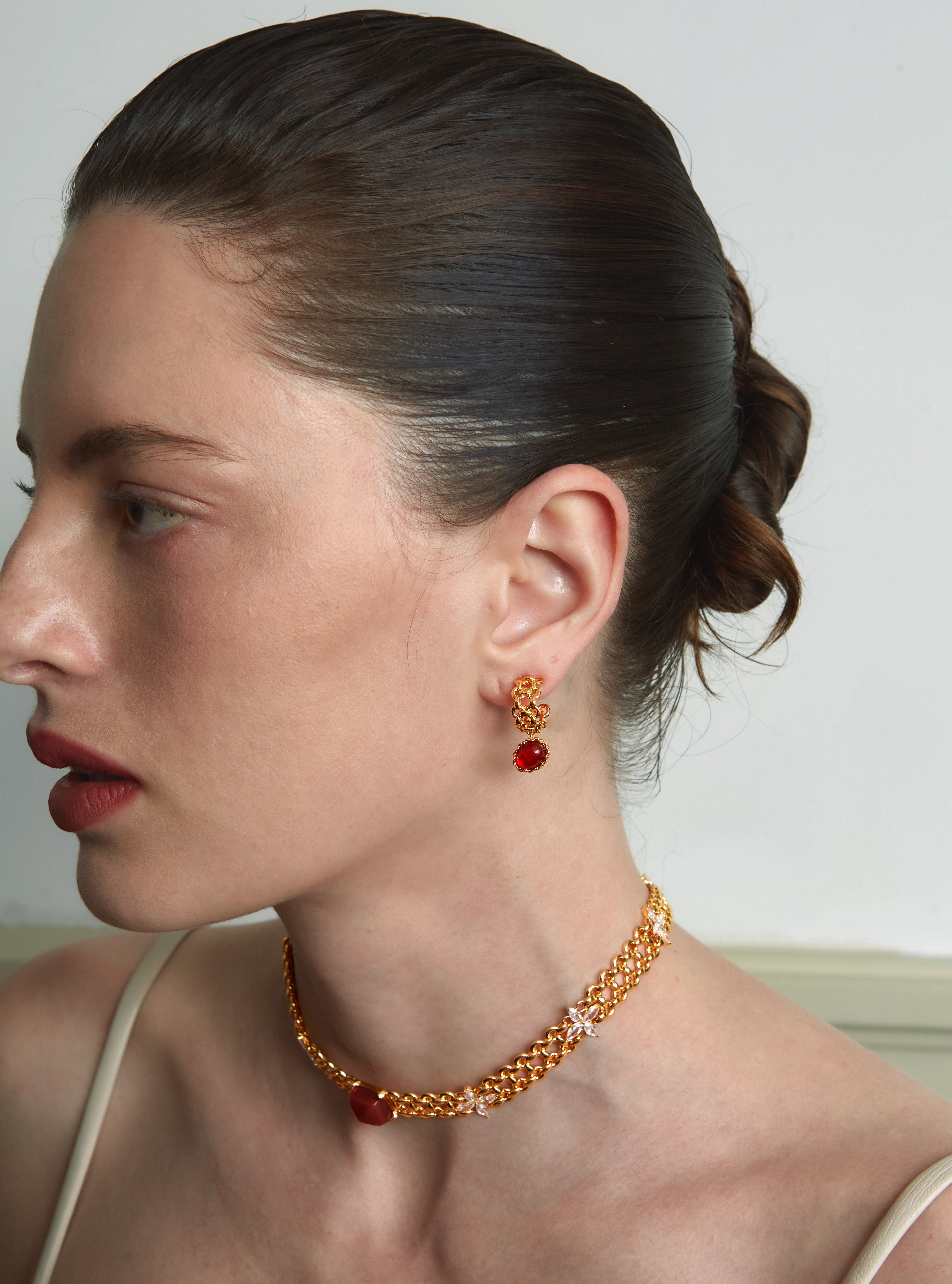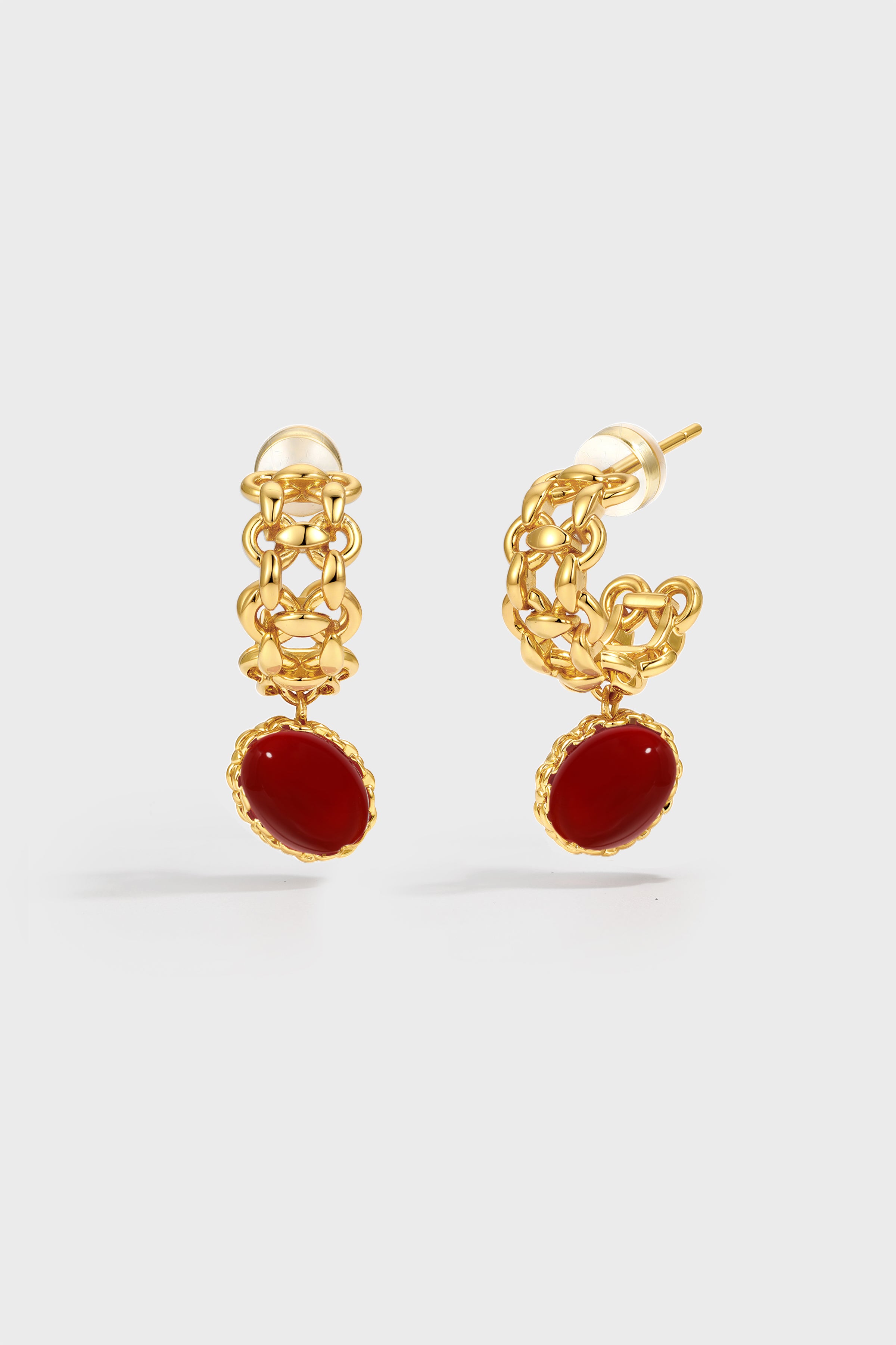 • Material: 24K gold-plated copper + Red Agate + 925 Silver Post