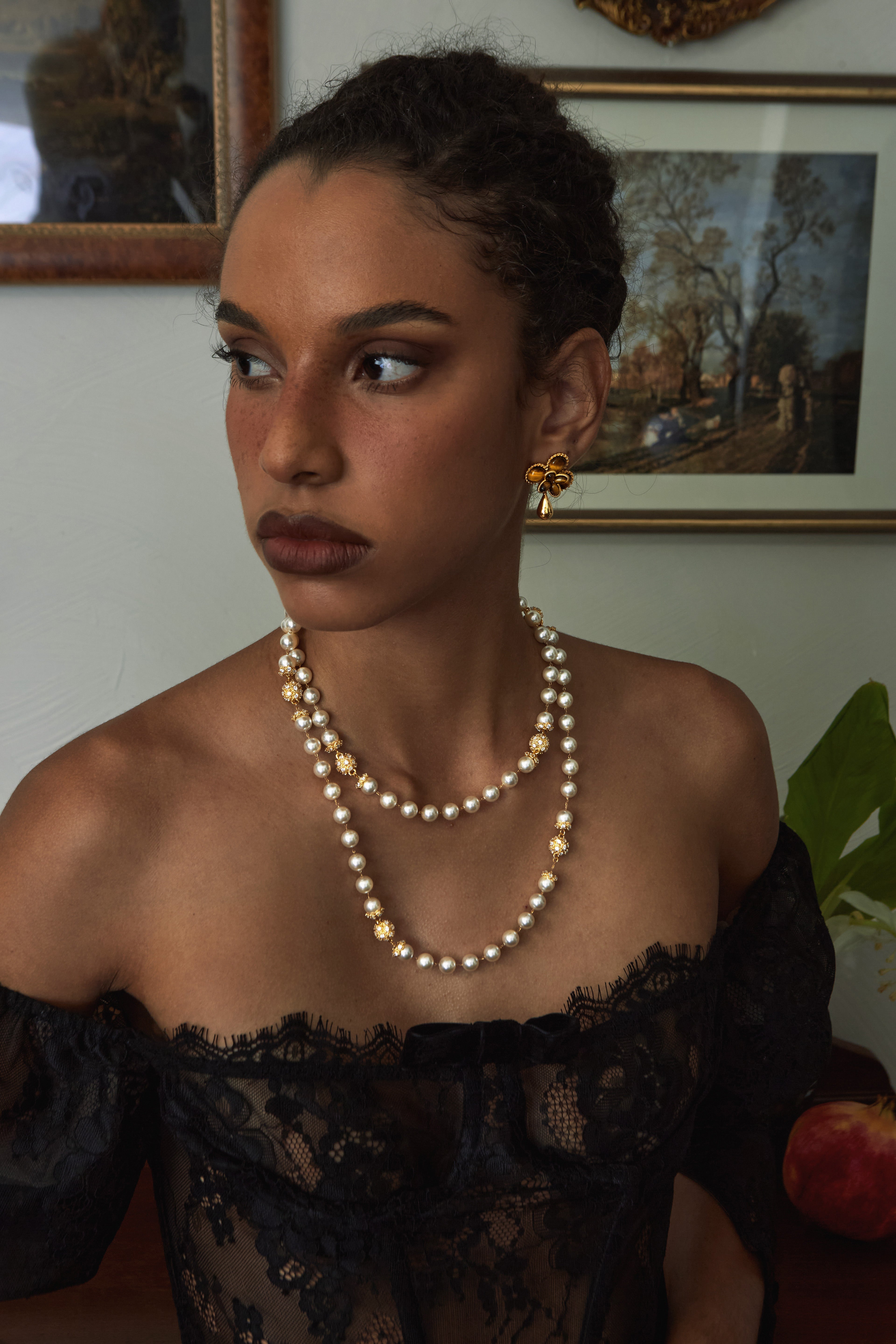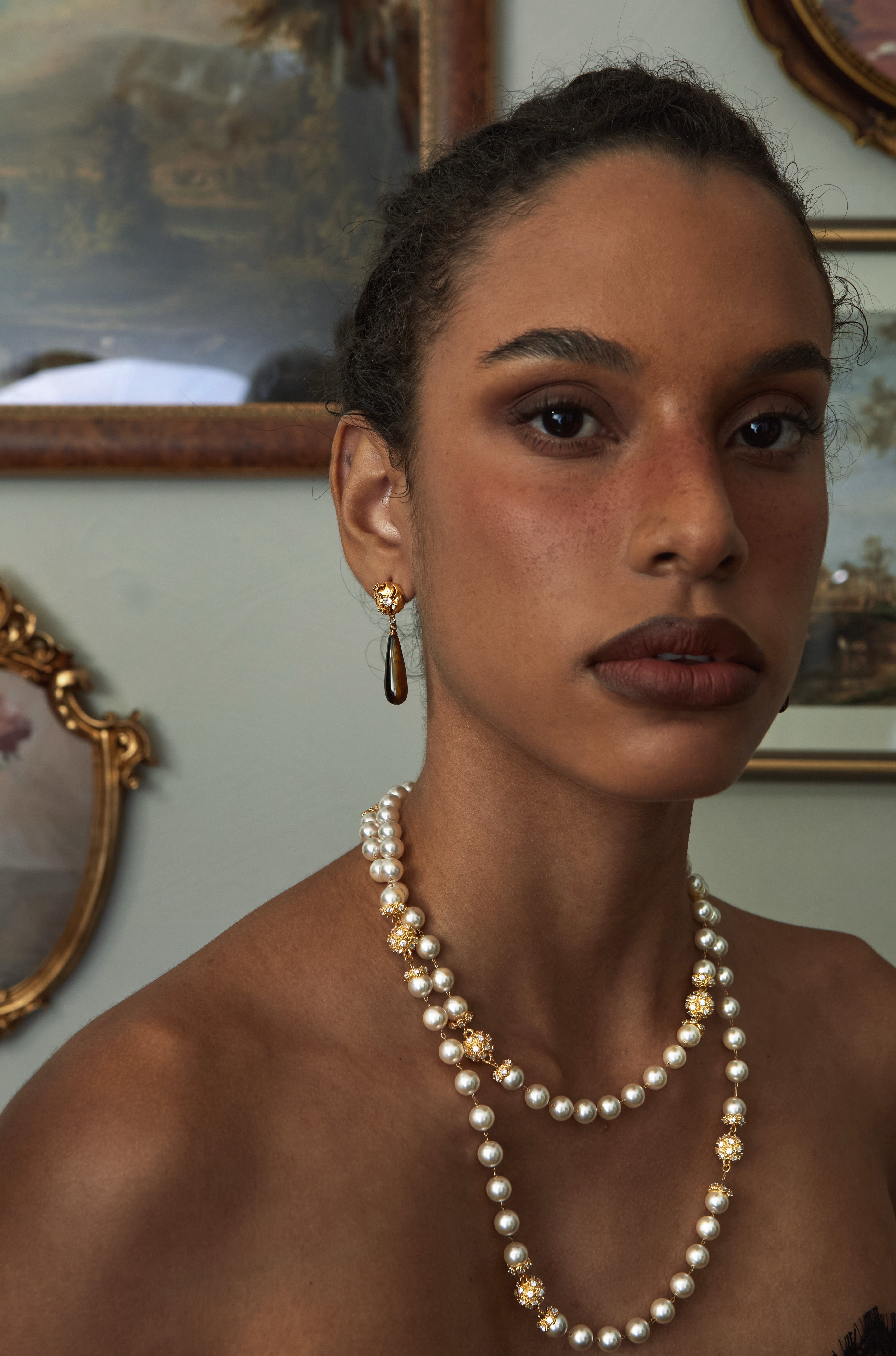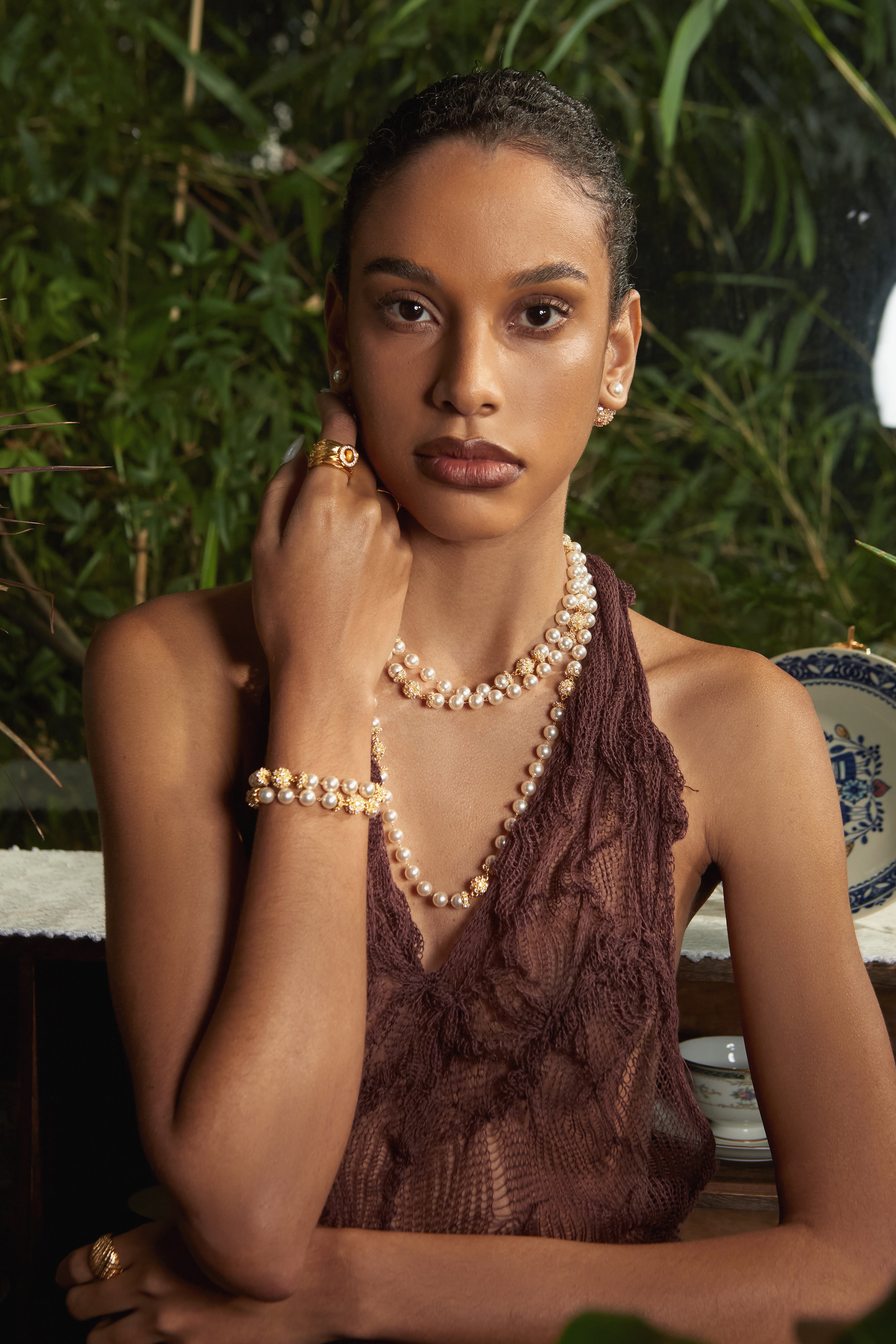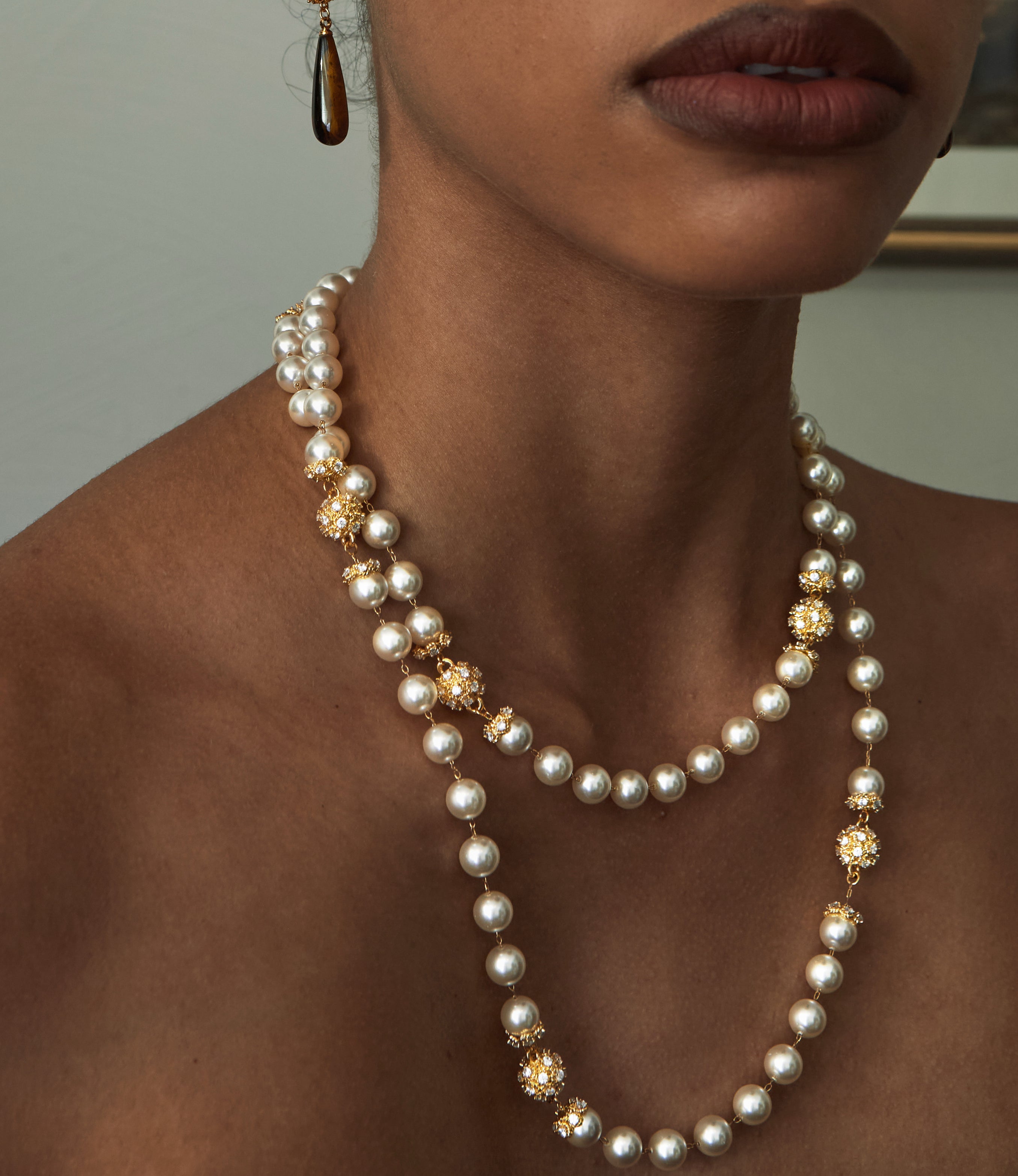 Gold: 24K Gold-plated Copper, Synthetic Cubic Zirconia, Synthetic Pearls