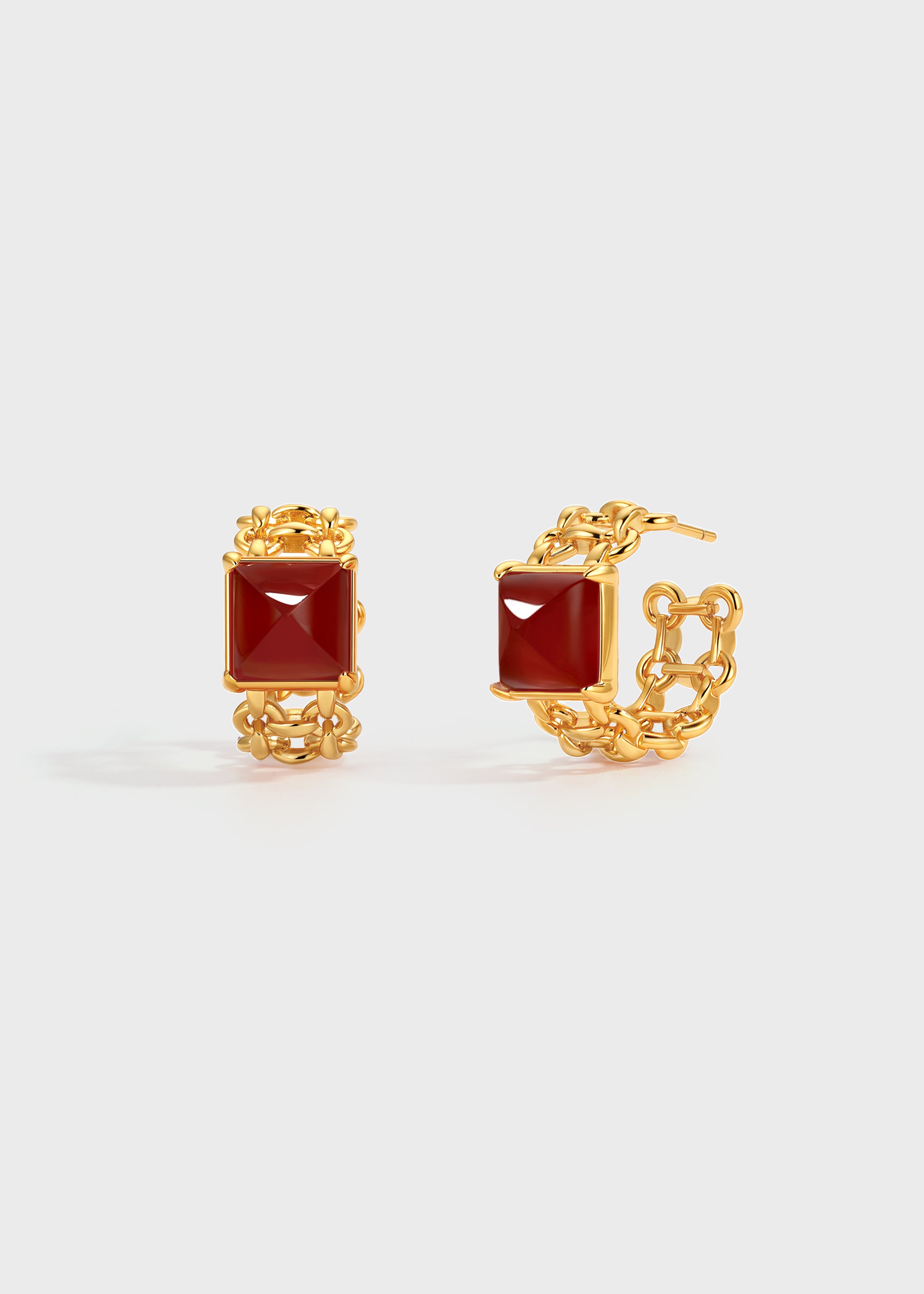 Sugar Pyramid Red Agate C-Hoop Earrings – 24K Gold Plated