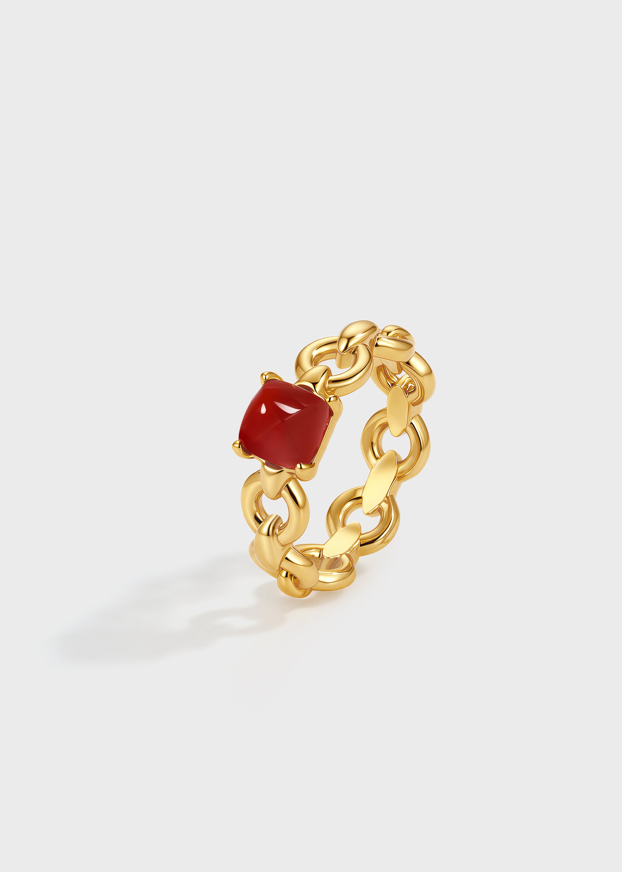 Woven Chain Red Agate Cabochon Ring – 24K Gold Plated