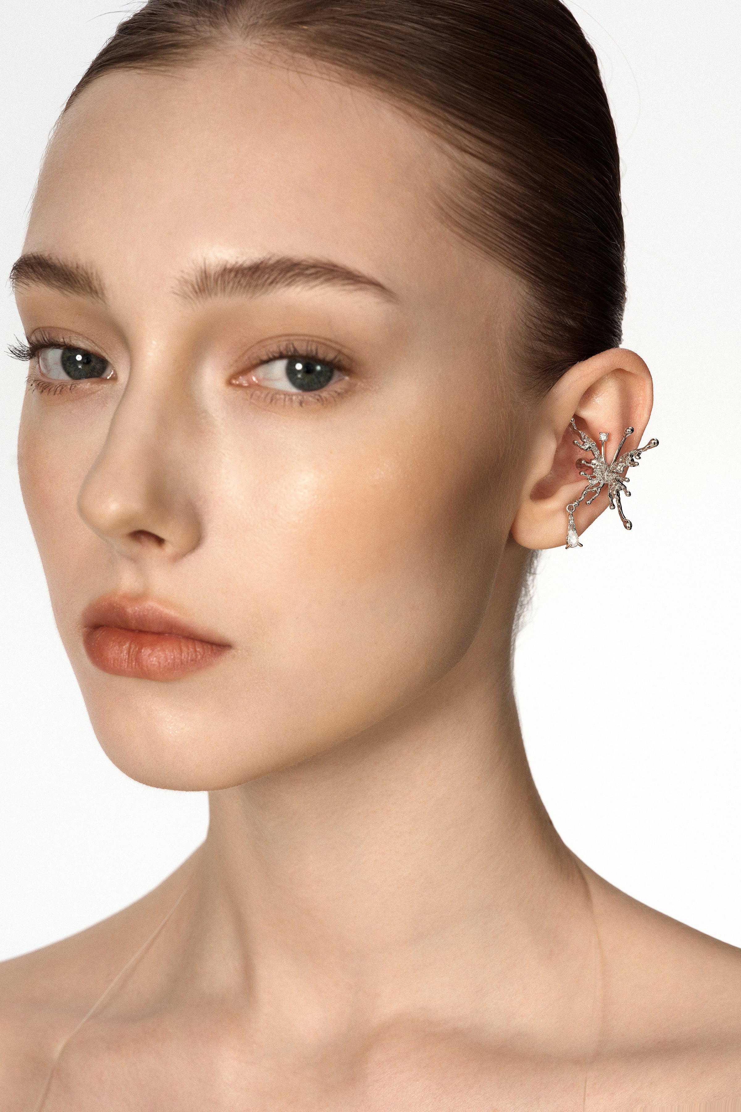 A sculptural butterfly wing unfolds naturally along the ear, defined by clean lines and quiet strength.