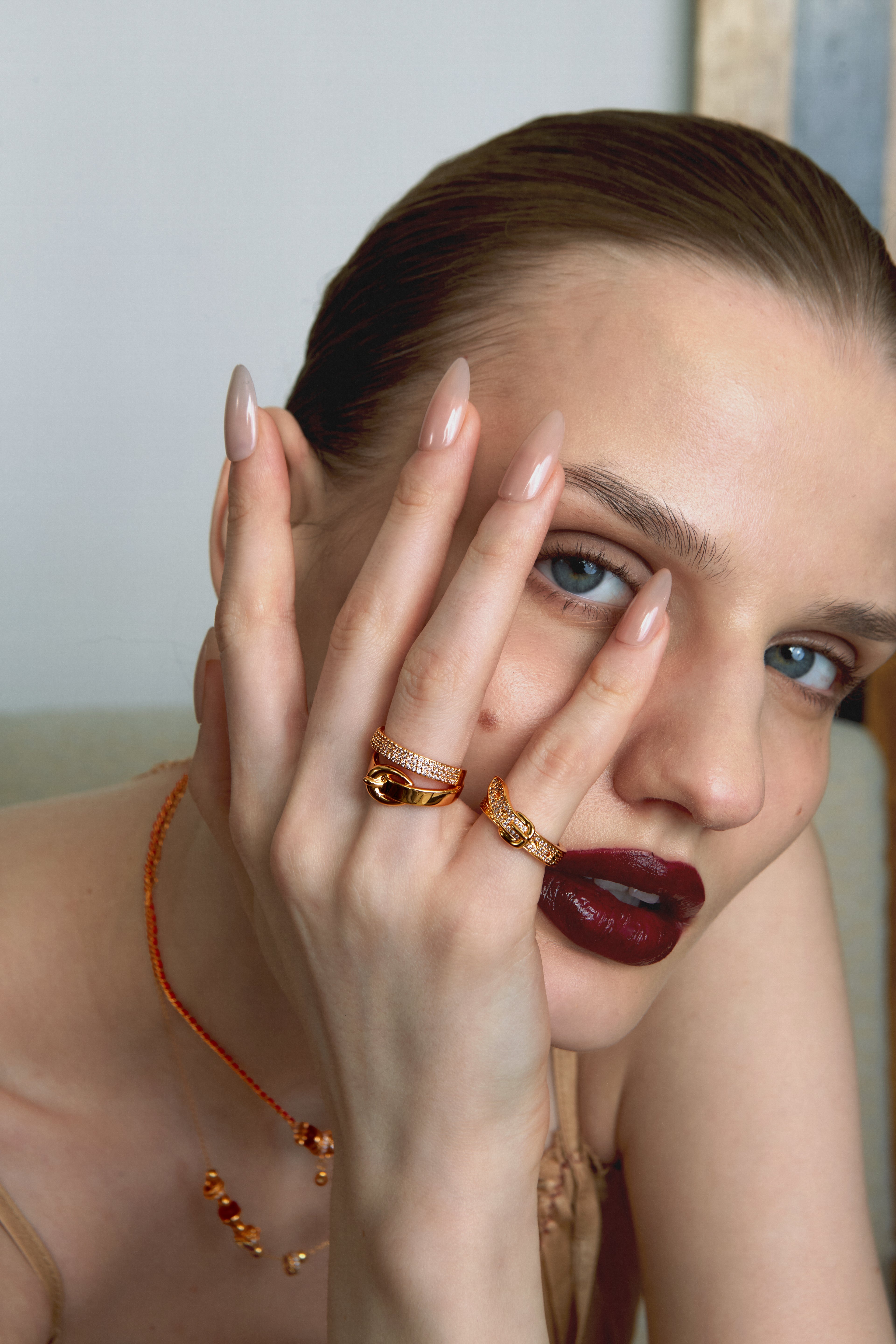 This ring features a three-dimensional openwork buckle design, crafted with clean lines and a strong architectural presence. Confident and unapologetic — made for those who don’t follow the crowd.