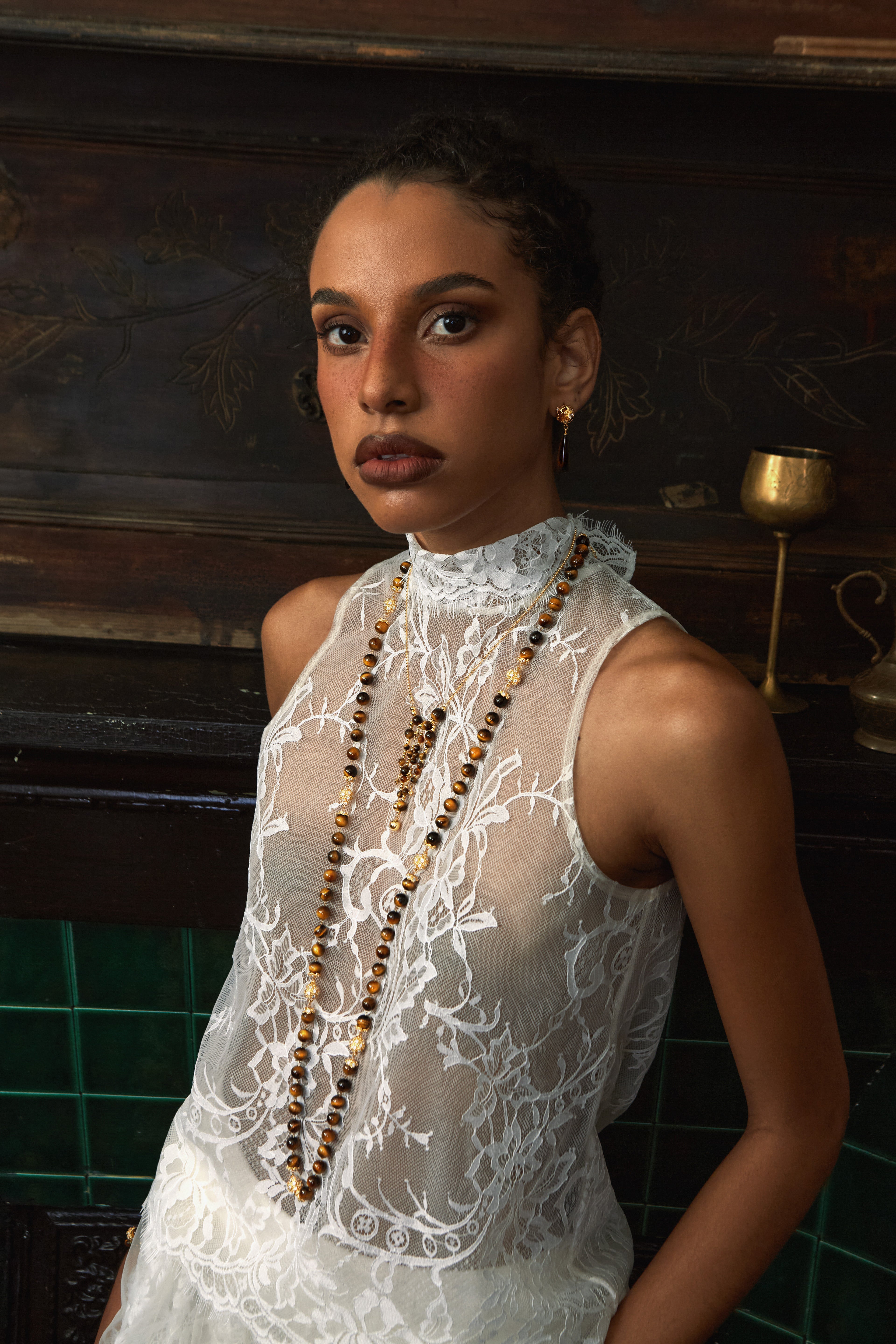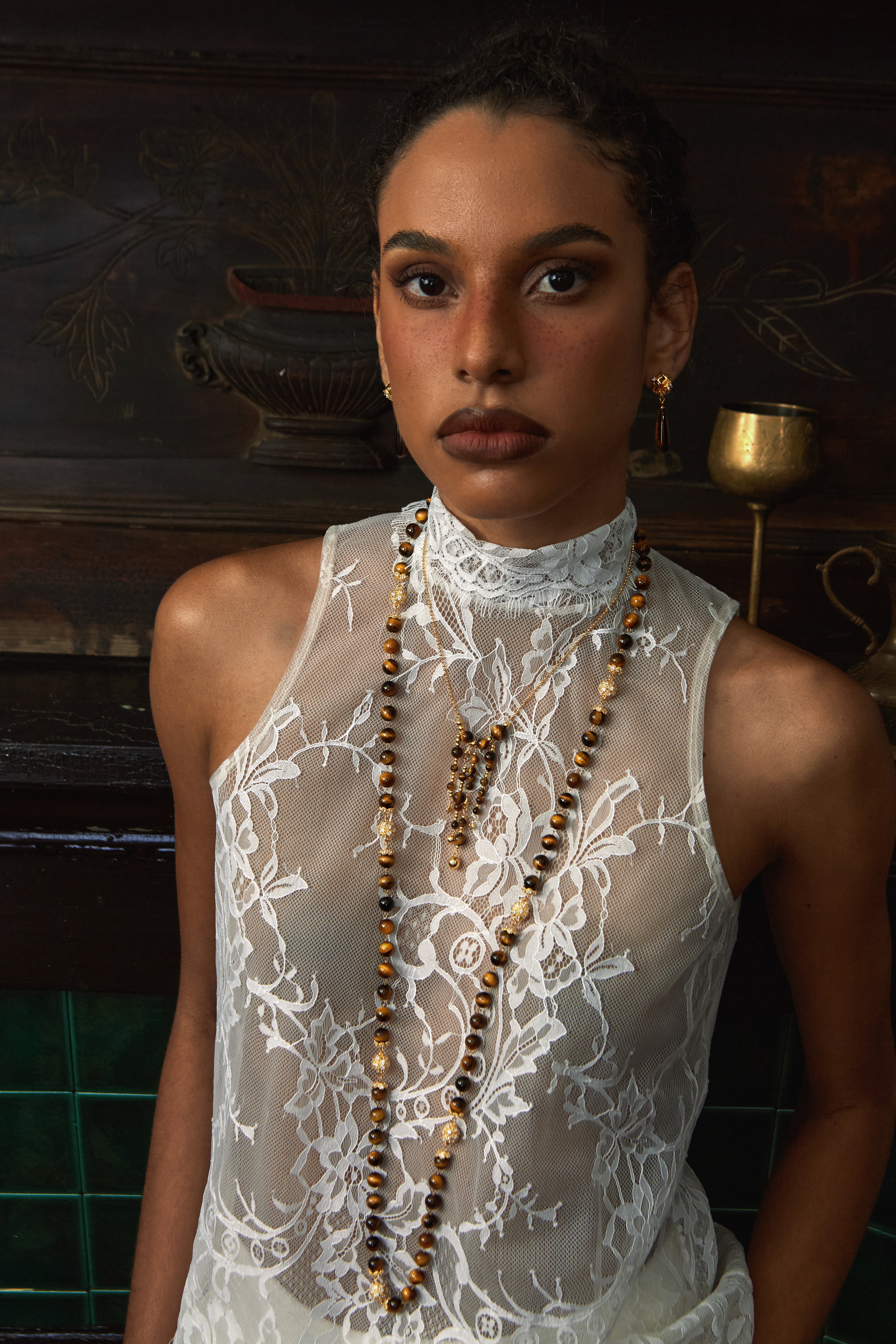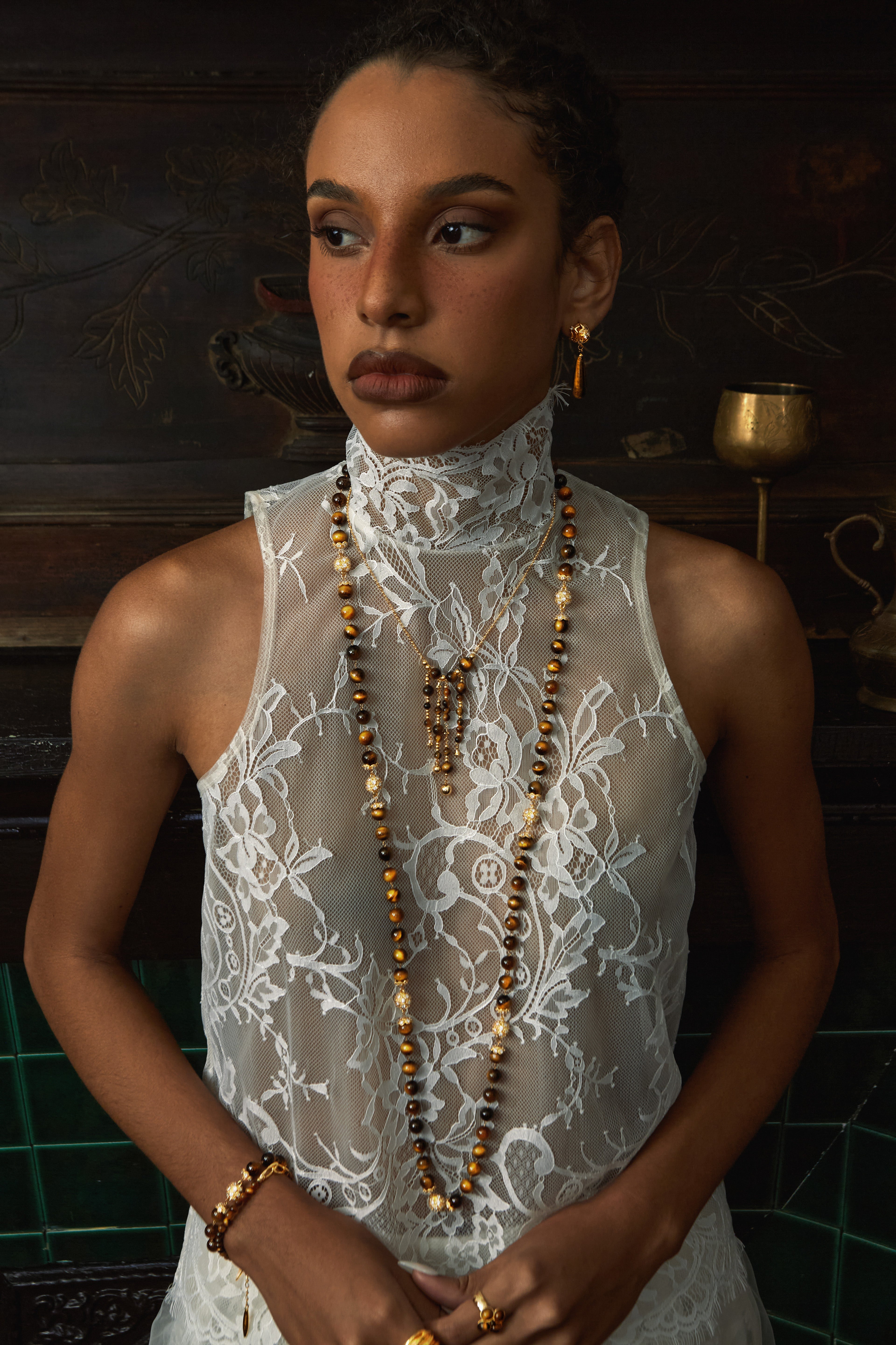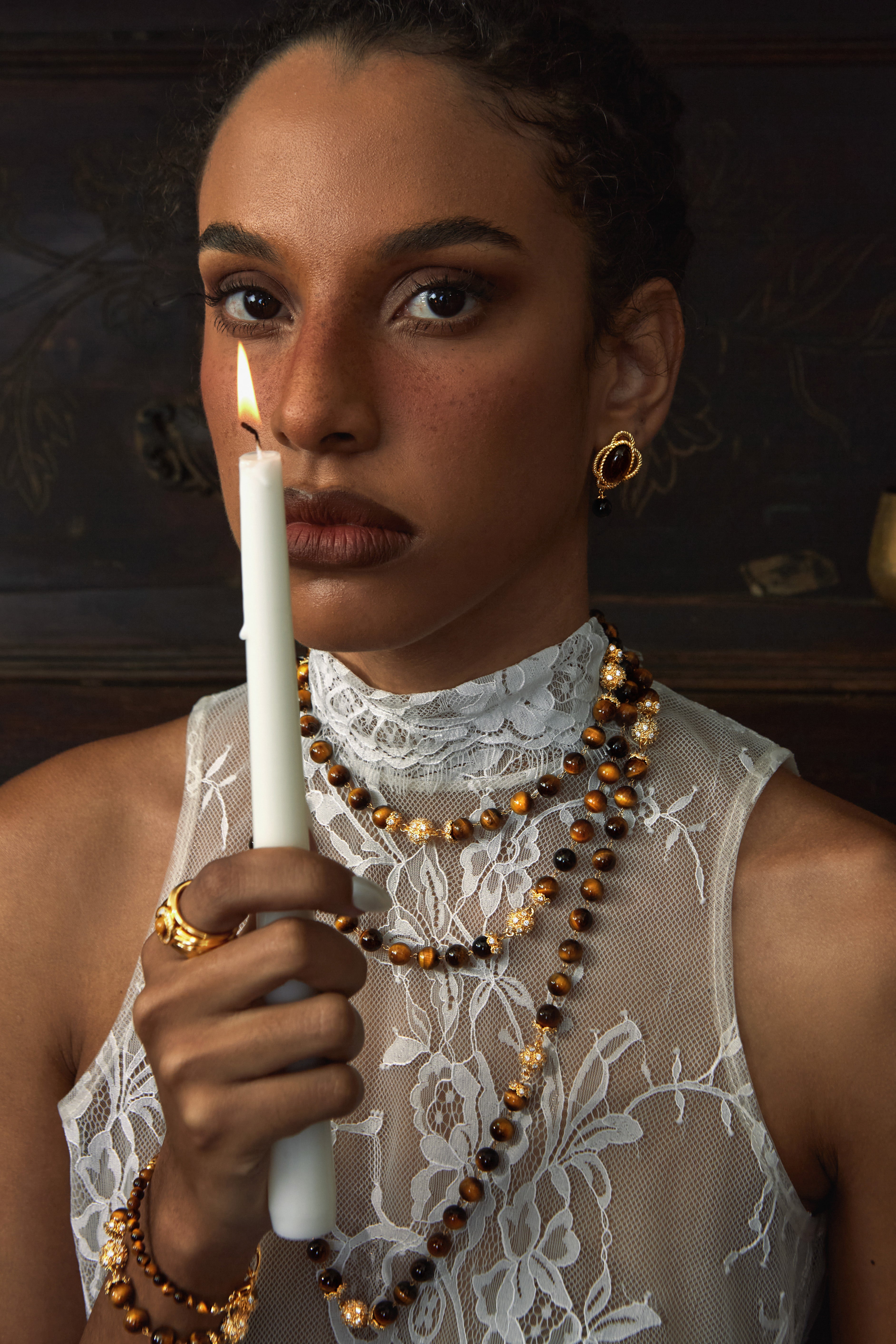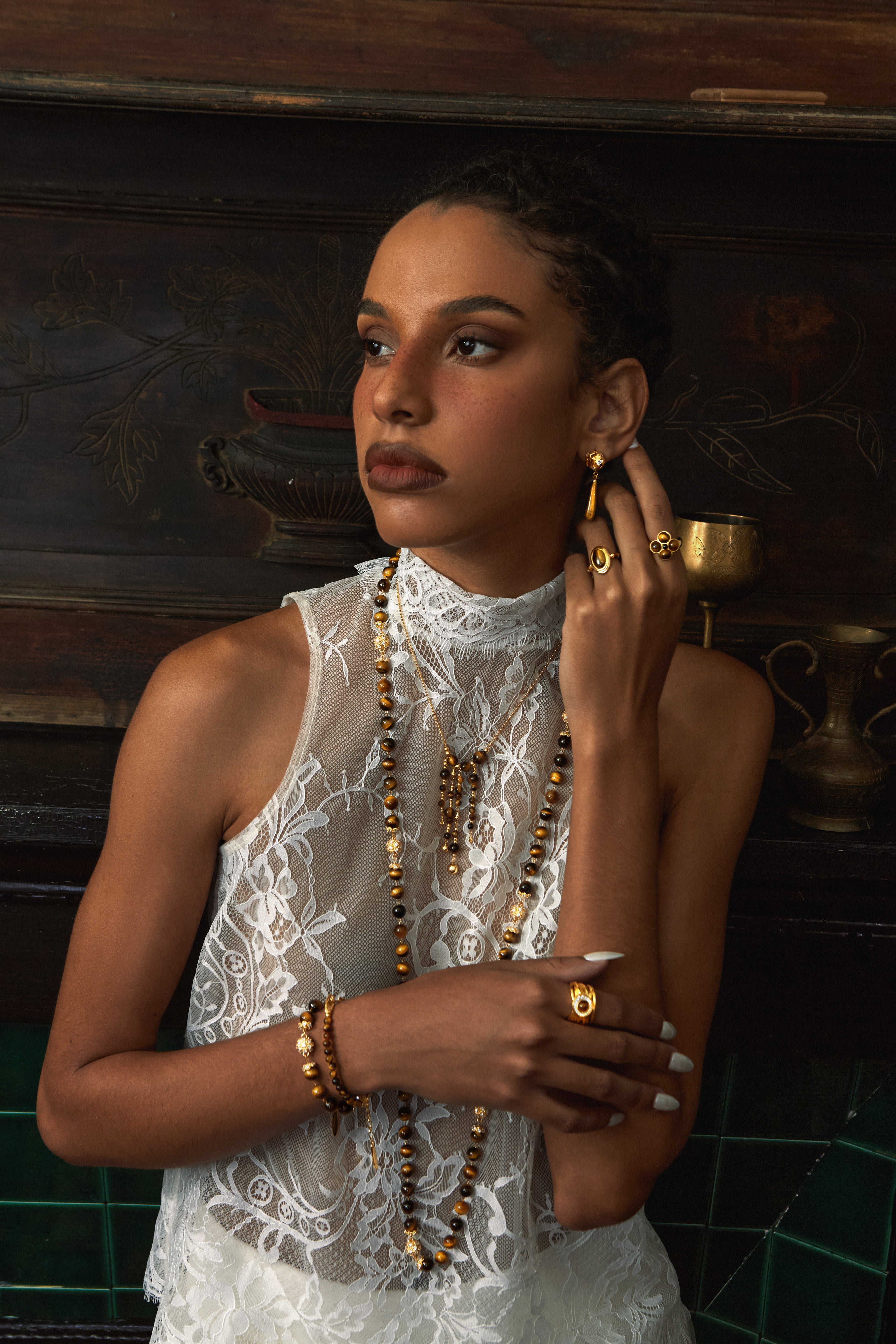 Rooted in the Maillard-inspired color palette, this design fuses the brown-golden gradient of Tiger Eye with a liquid gold sheen, accented with Cubic Zirconia — creating a warm, grounded yet dynamic vintage jewelry piece for fall and winter.