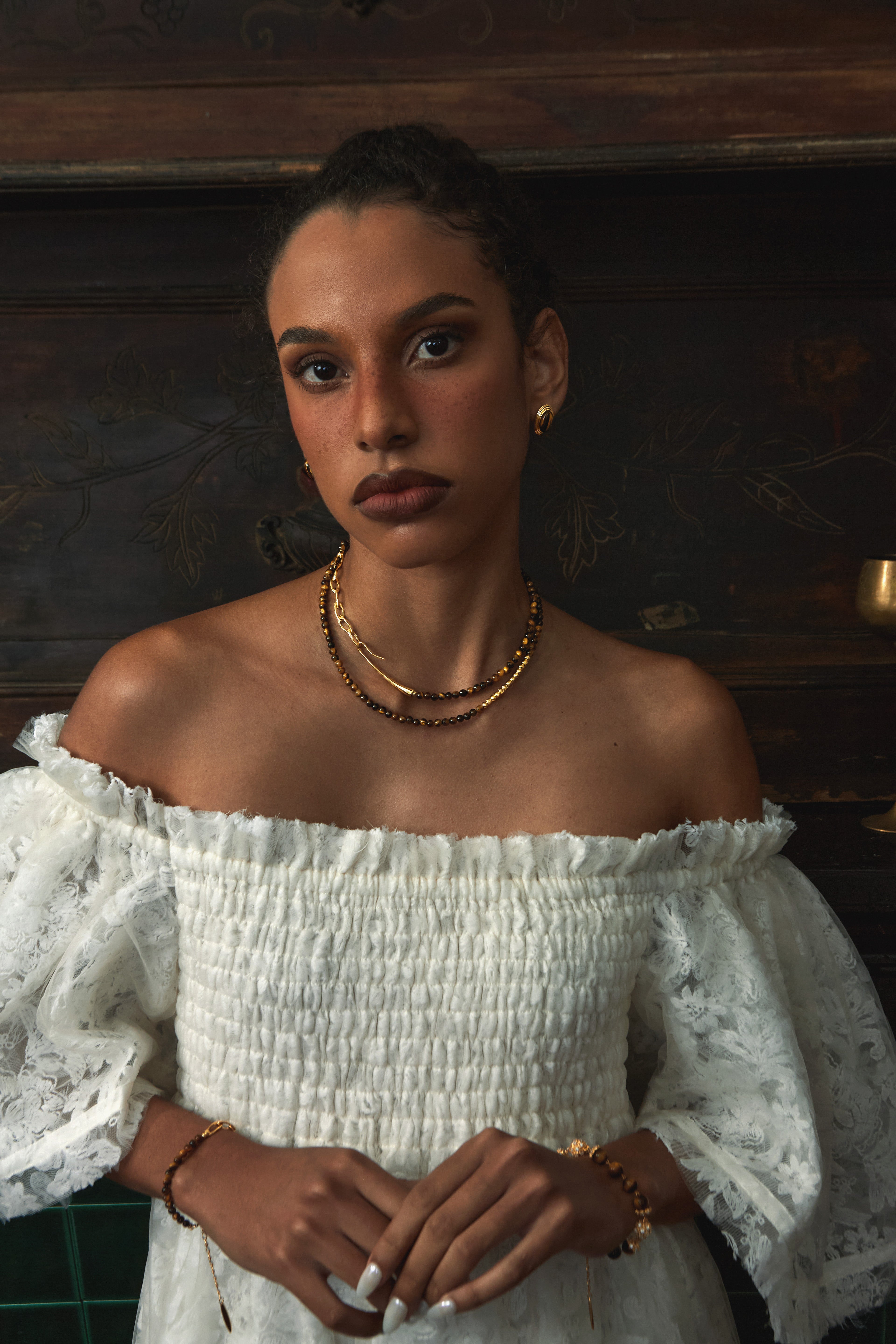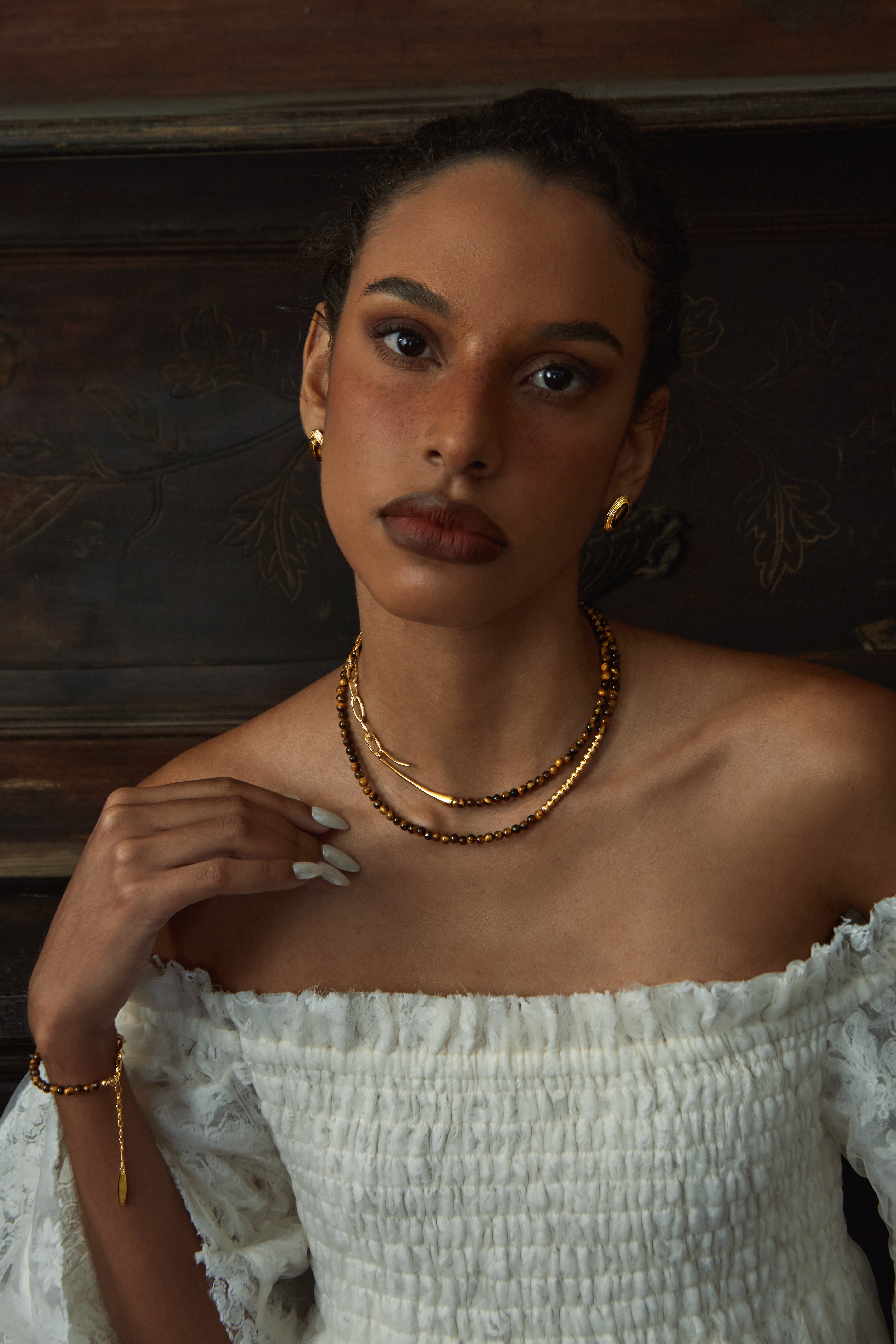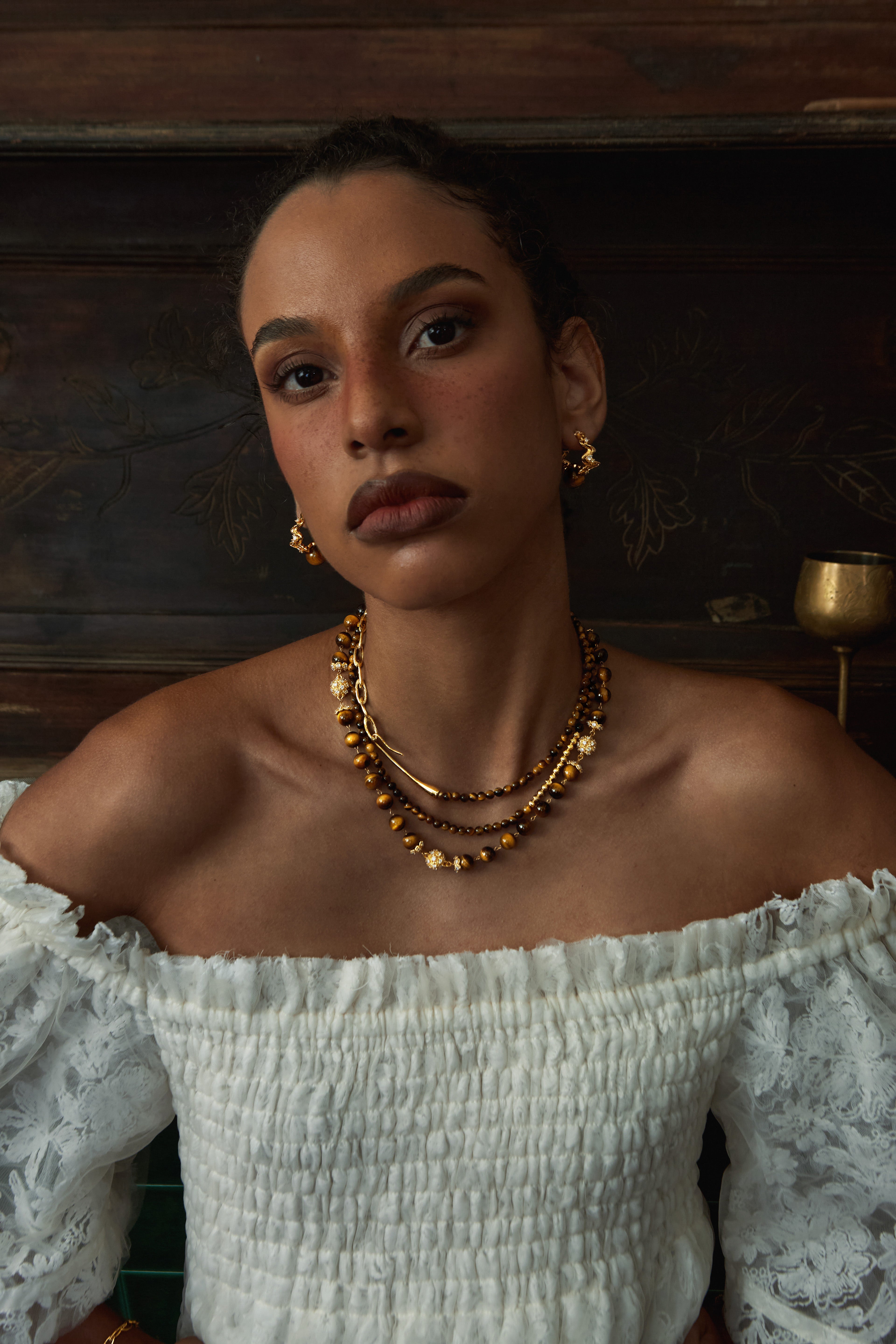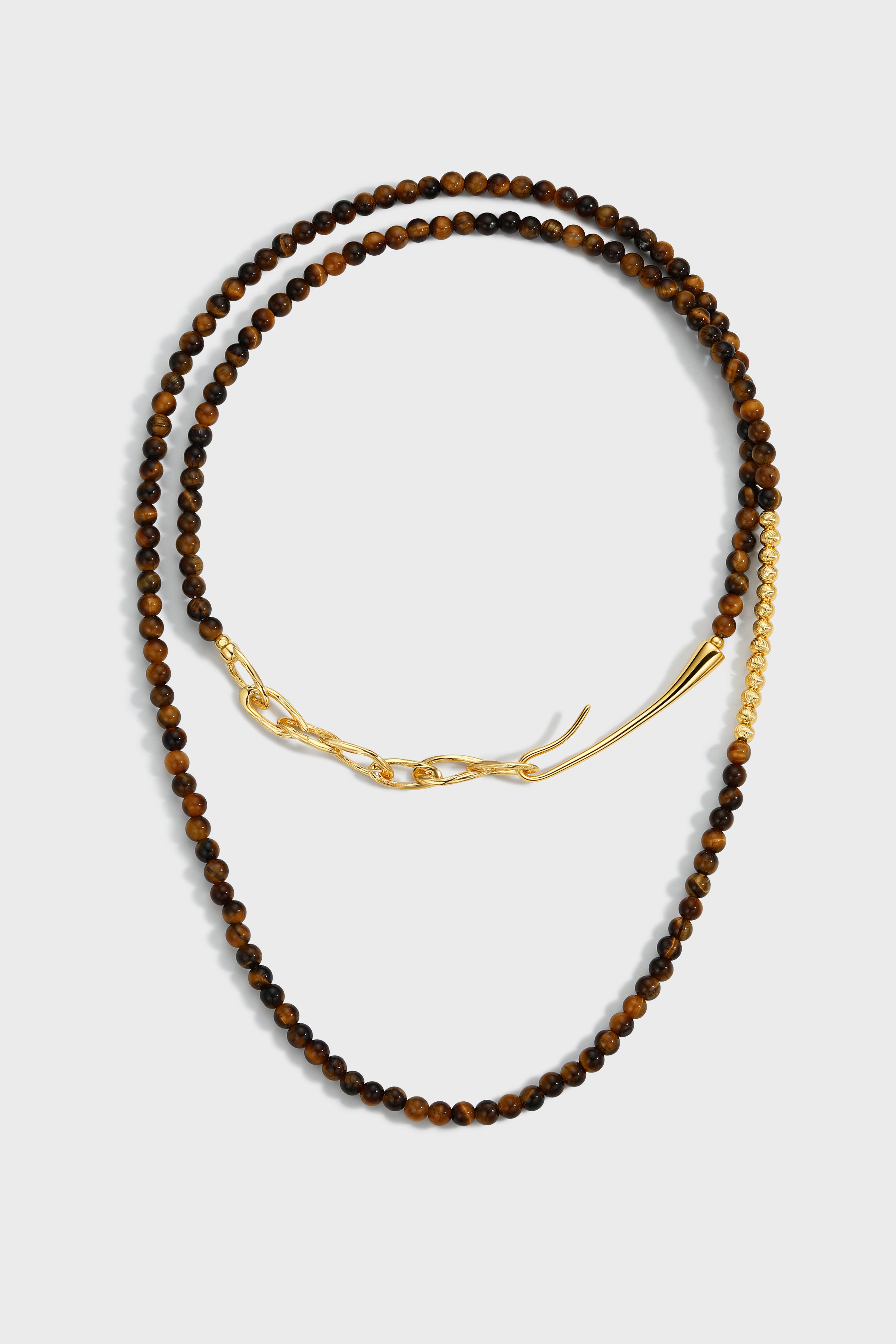 Rooted in the Maillard-inspired color palette, this design fuses the brown-golden gradient of Tiger Eye with a liquid gold sheen — creating a warm, grounded yet dynamic vintage jewelry piece for fall and winter.