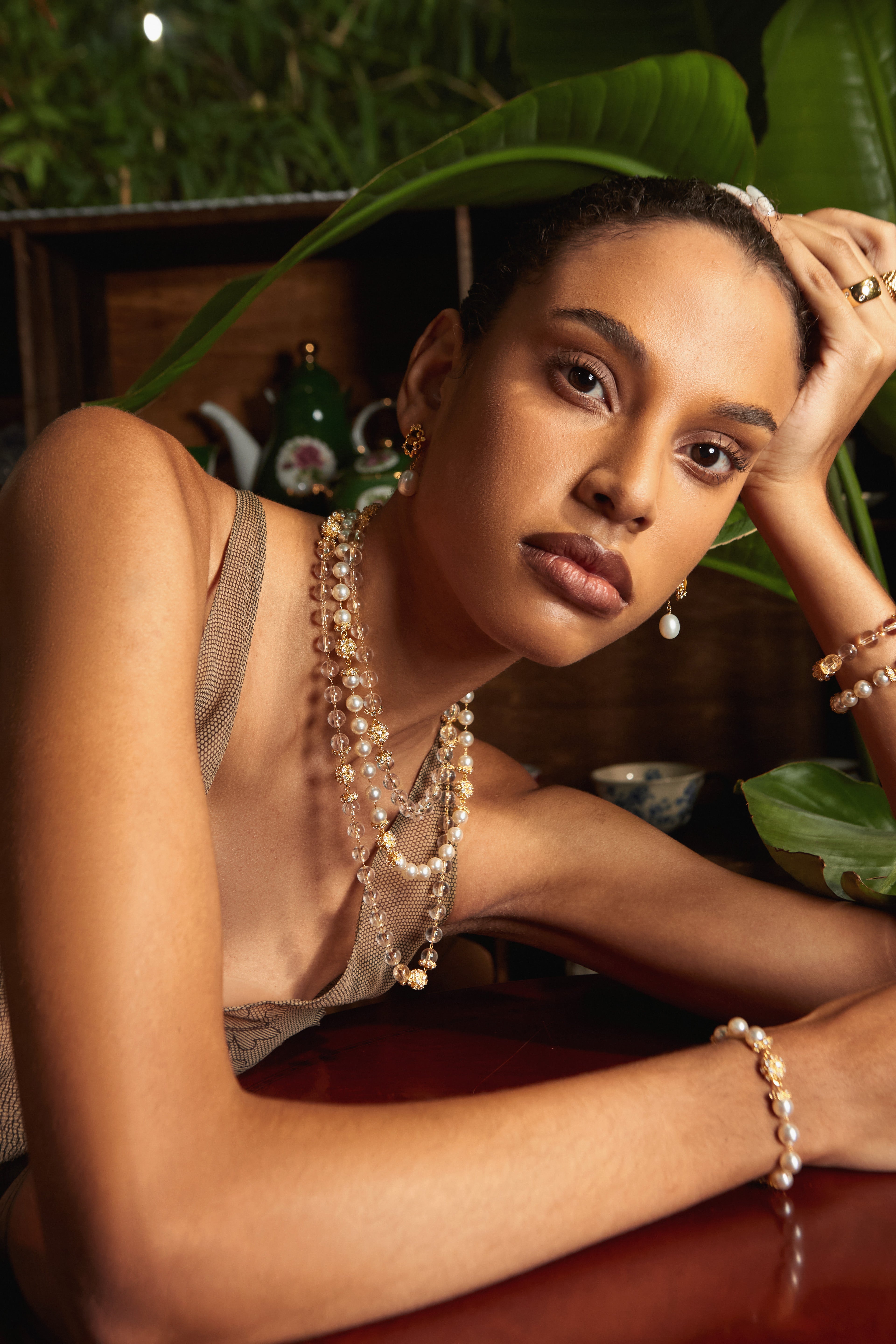 Material: 24K Gold-plated Copper, Glass Beads, Cubic Zirconia