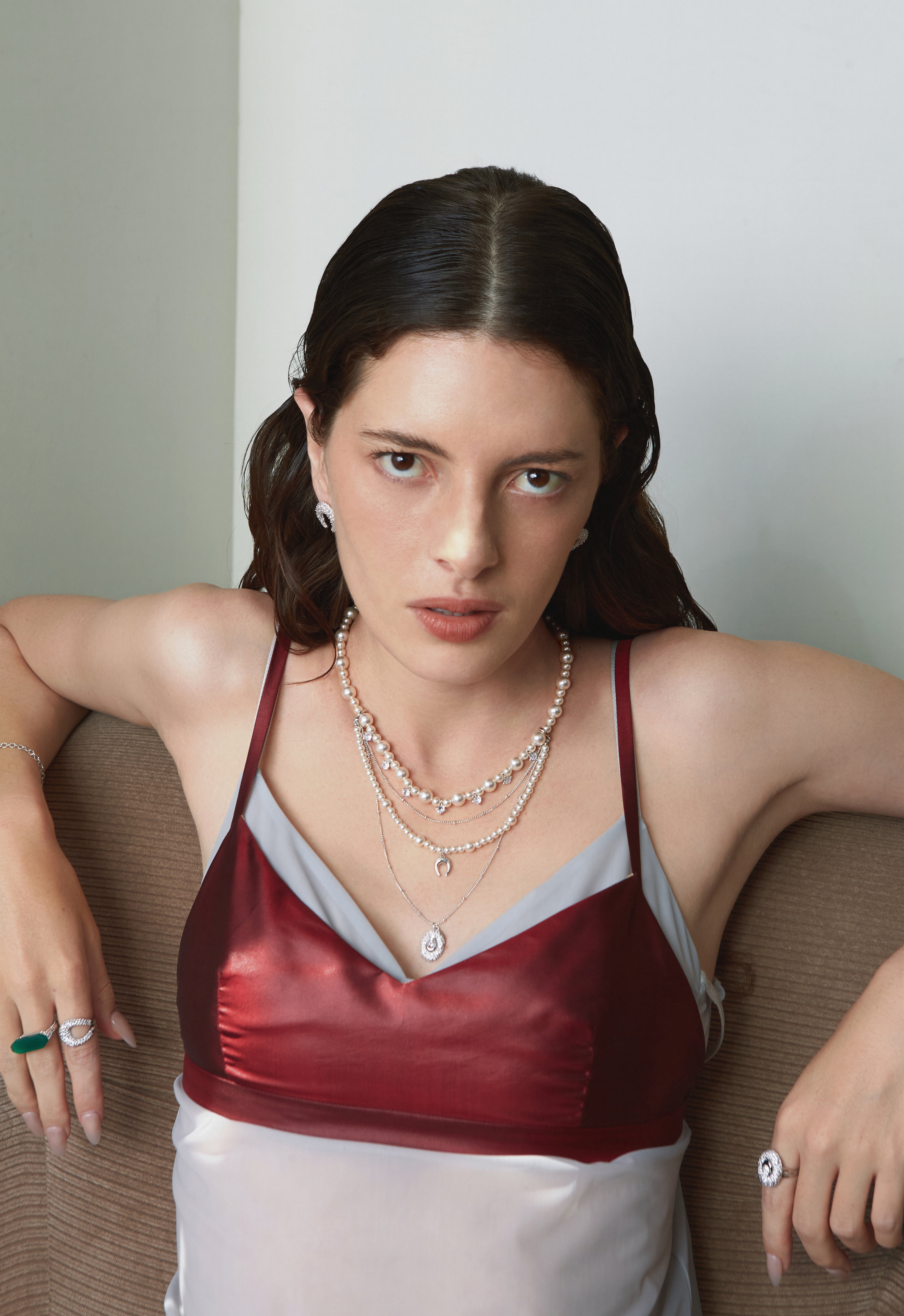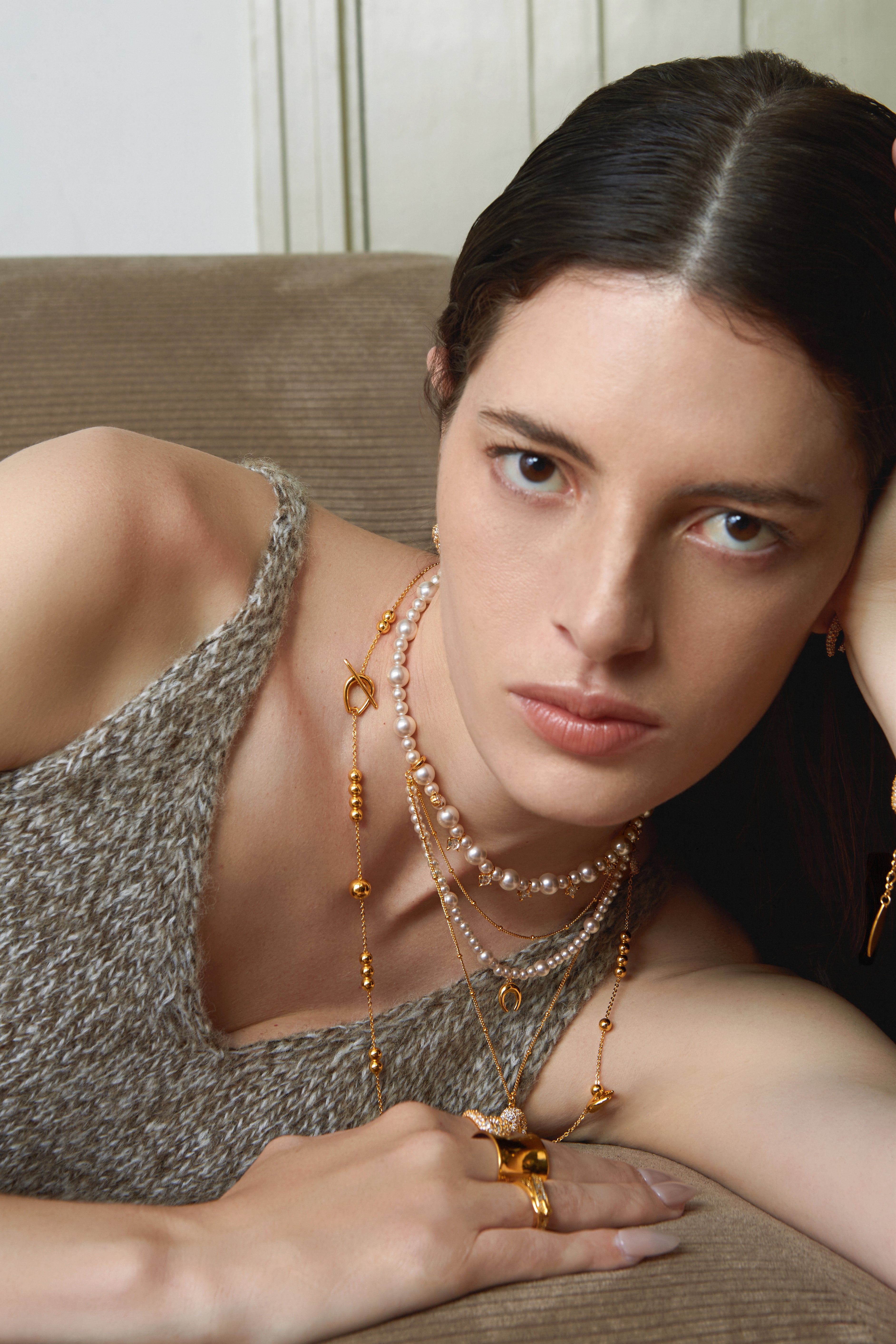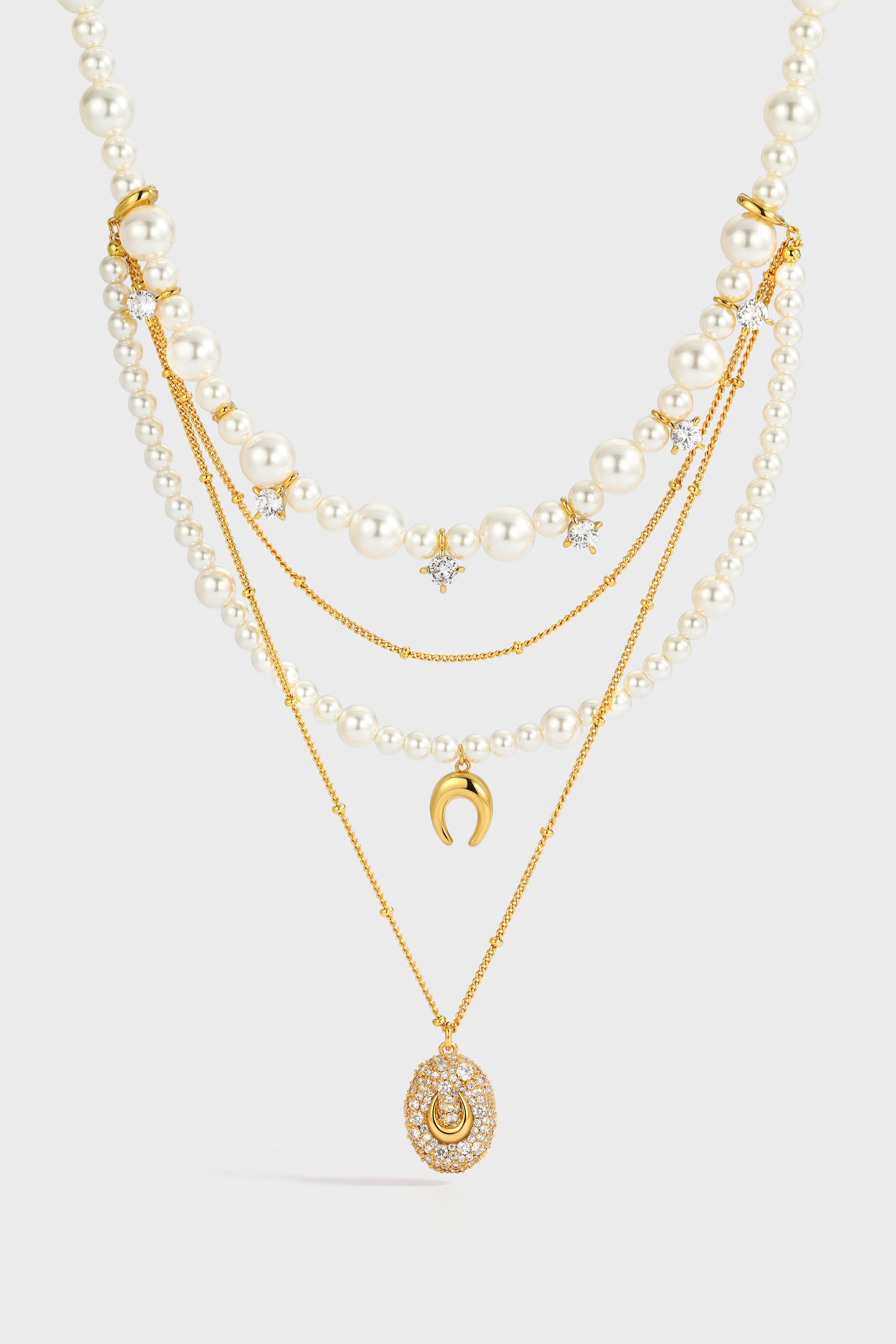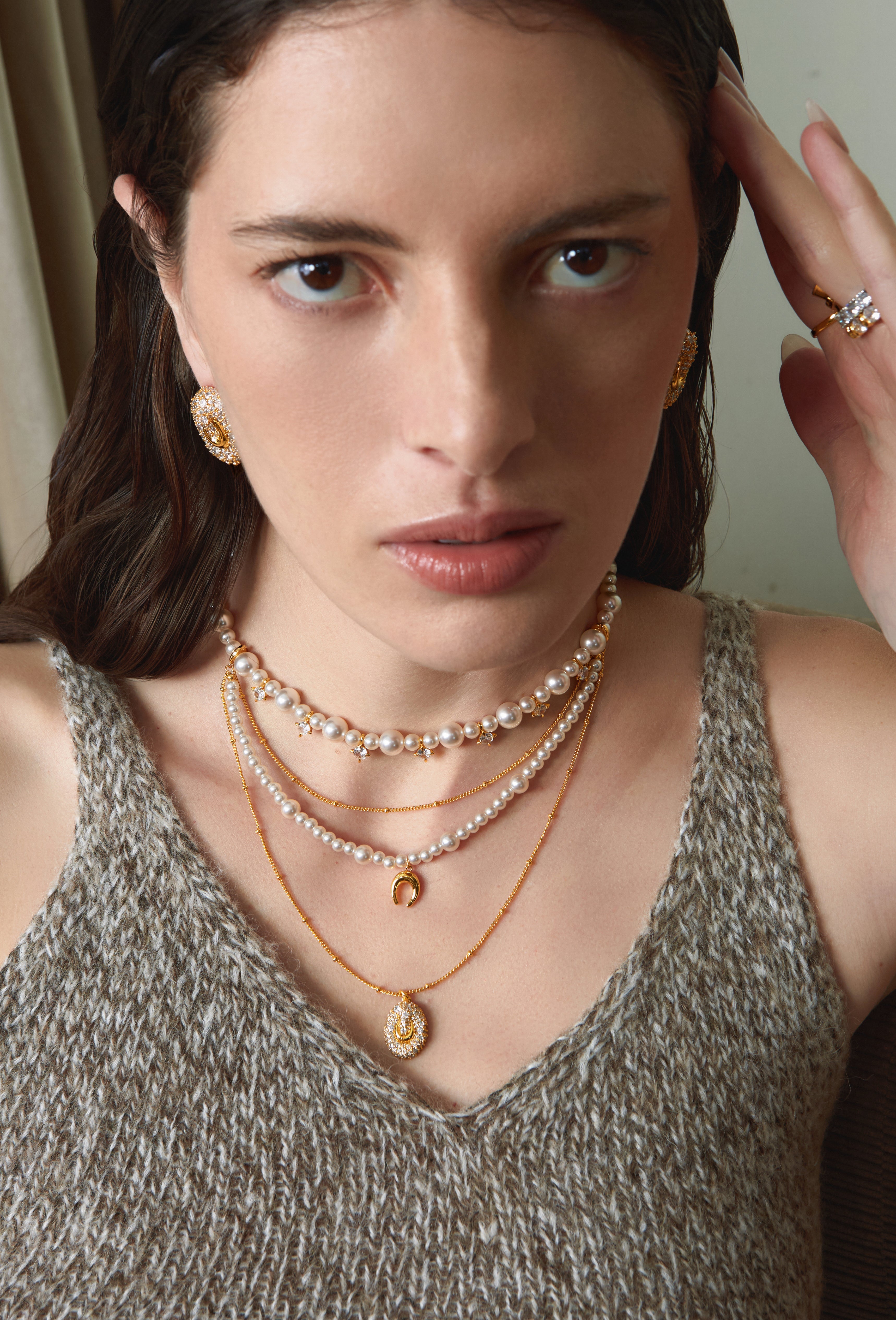 An elevated layered design combining pearls and fine chains.