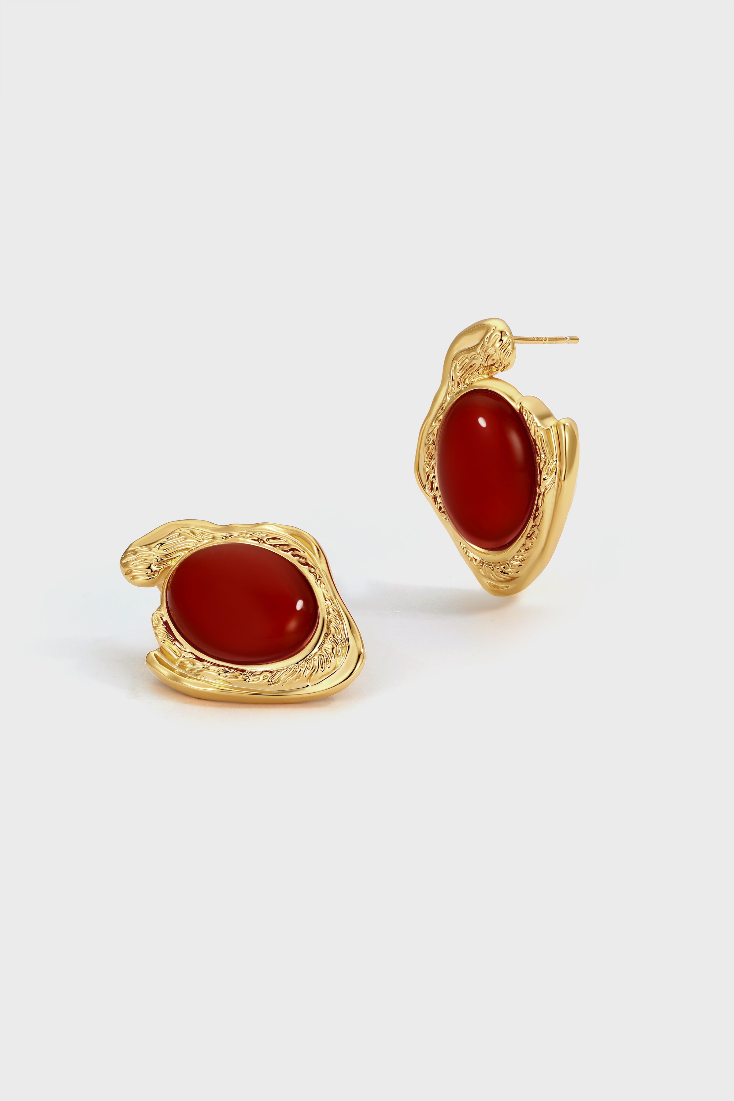 Copper plated with 24K gold + Red Agate + 925 silver posts