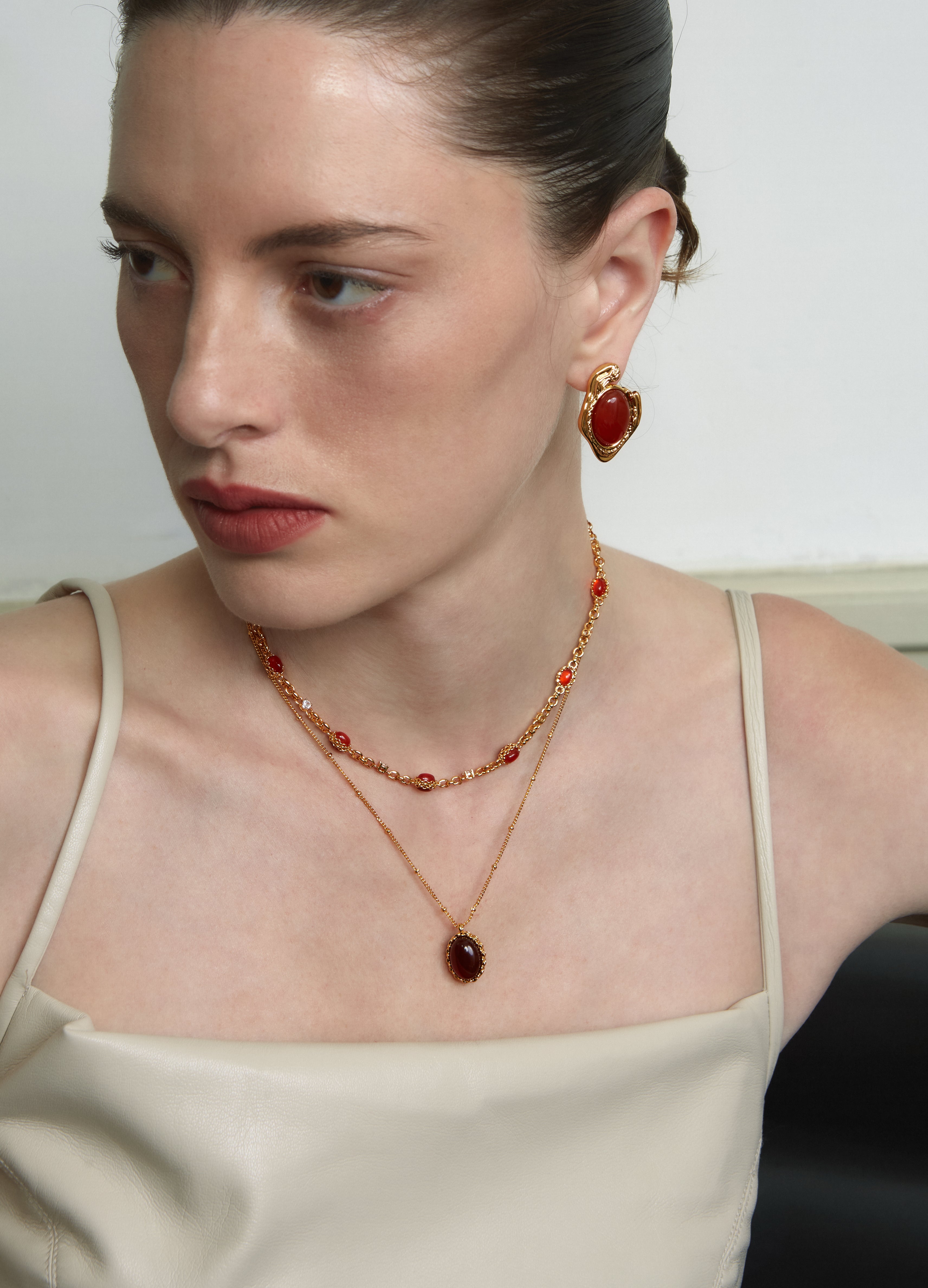 Crafted with selected natural, jewelry-grade red agate, featuring a rich, saturated hue reminiscent of a luminous ruby. Each stone is naturally unique, delivering fine-jewelry quality and visual depth.