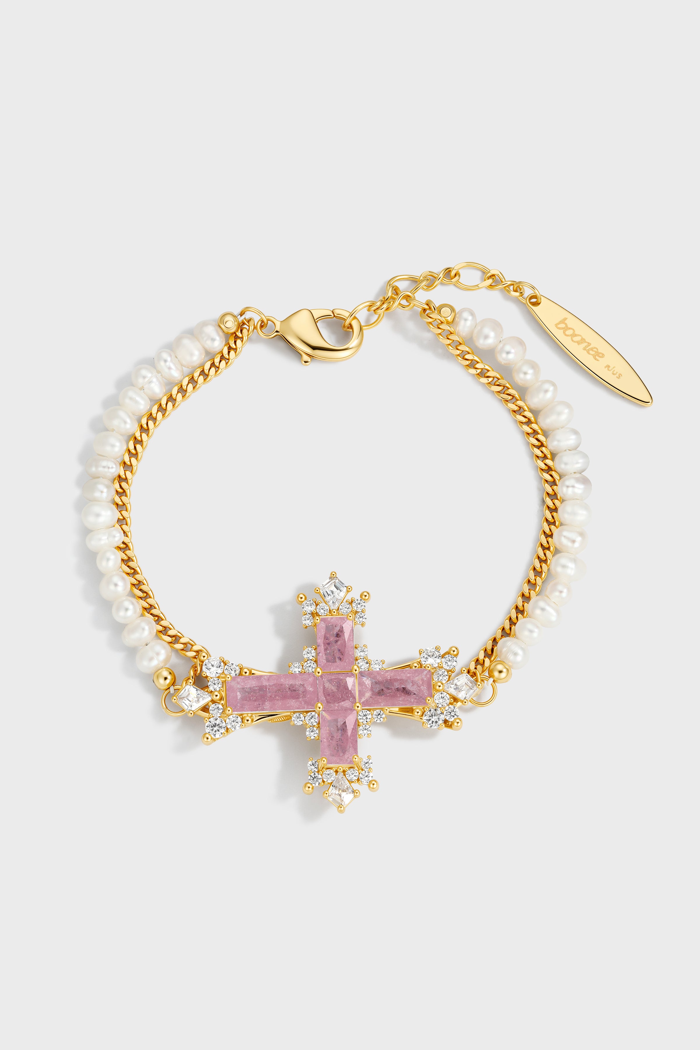 Pink zircon shines with the gentleness of dawn, yet carries a delicate edge. The lustrous pearls and sleek metal chain intertwine, embodying the harmony of grace and strength in every woman. A gift to yourself—a reminder that tenderness is not surrender, but a quiet power.